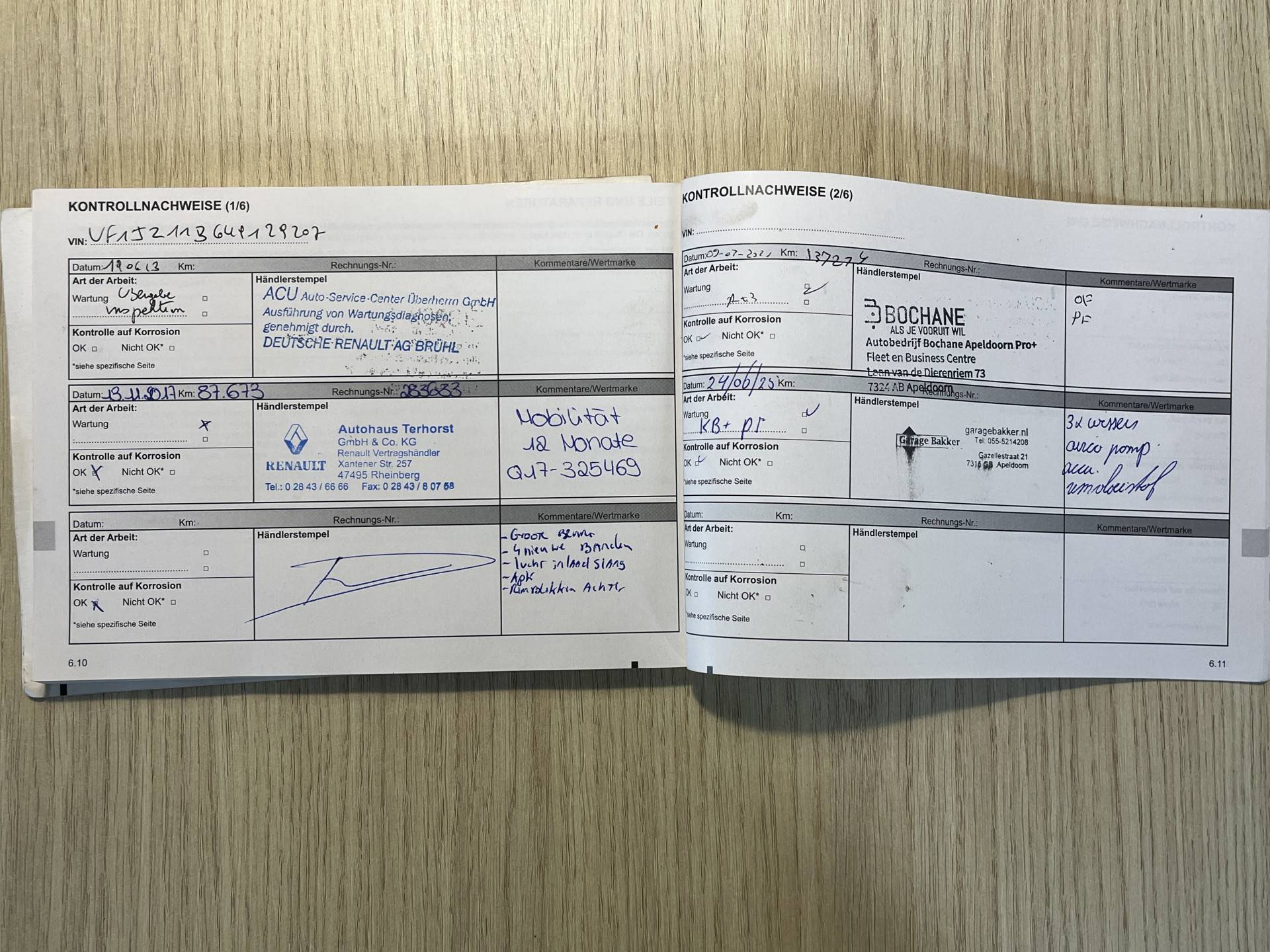 - Alle facturen van het onderhoud zijn aanwezig.