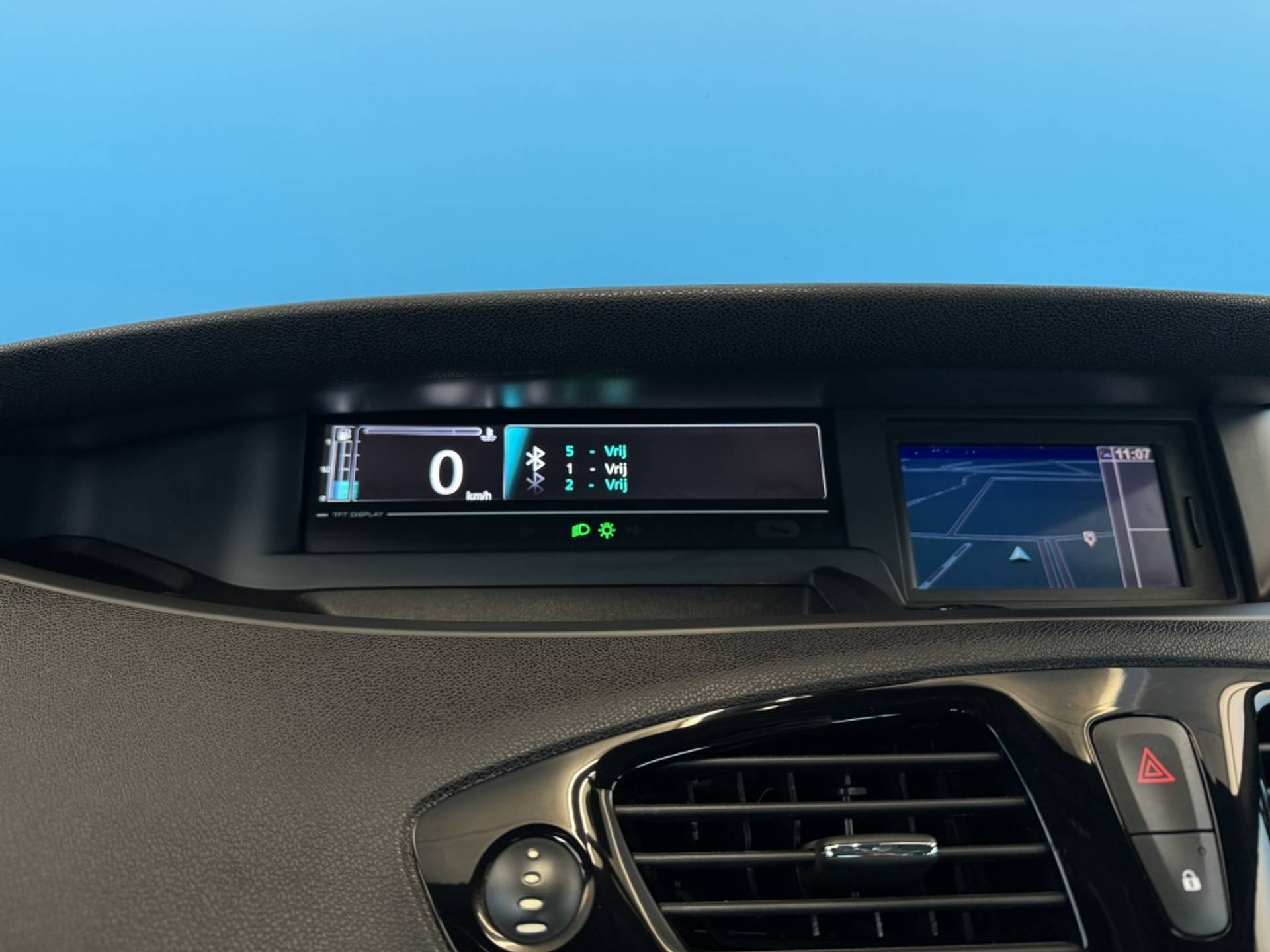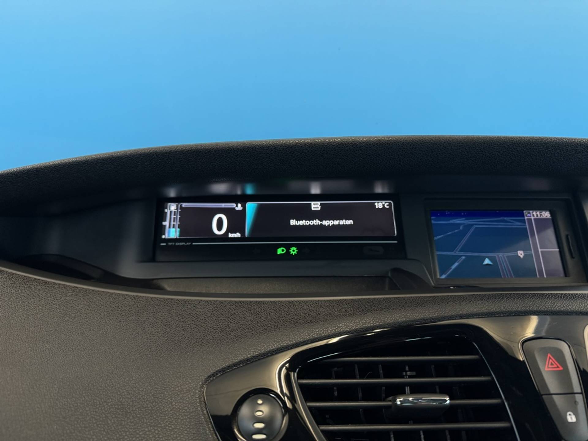 De achteruitrijcamera brengt precies in zicht wat zich achter u bevindt en toont een glashelder beeld op hoge resolutie. Een geluidssignaal waarschuwt hoeveel ruimte u nog heeft. Het navigatiesysteem is uw vertrouwde gids, waarheen de reis ook gaat. Het comfort wordt verhoogd door de aanwezige electronic climate control. Maximumsnelheid? Even de cruise control instellen en u blijft perfect binnen de marges. Klinkt dit bekend? Met een volle boodschappentas bij uw auto aankomen en dan onderin op zoek moeten naar de sleutel. Hoeft niet bij deze Renault Grand Scénic dankzij de keyless entry. Ook is de Renault uitgerust met: automatisch dimmende spiegels, lederen stuur en lederen versnellingspook.