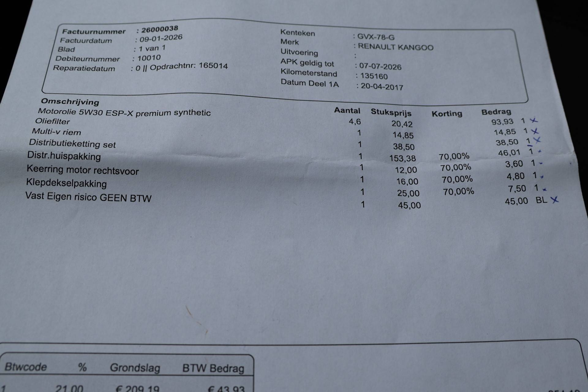 APK: Nieuwe APK bij aflevering