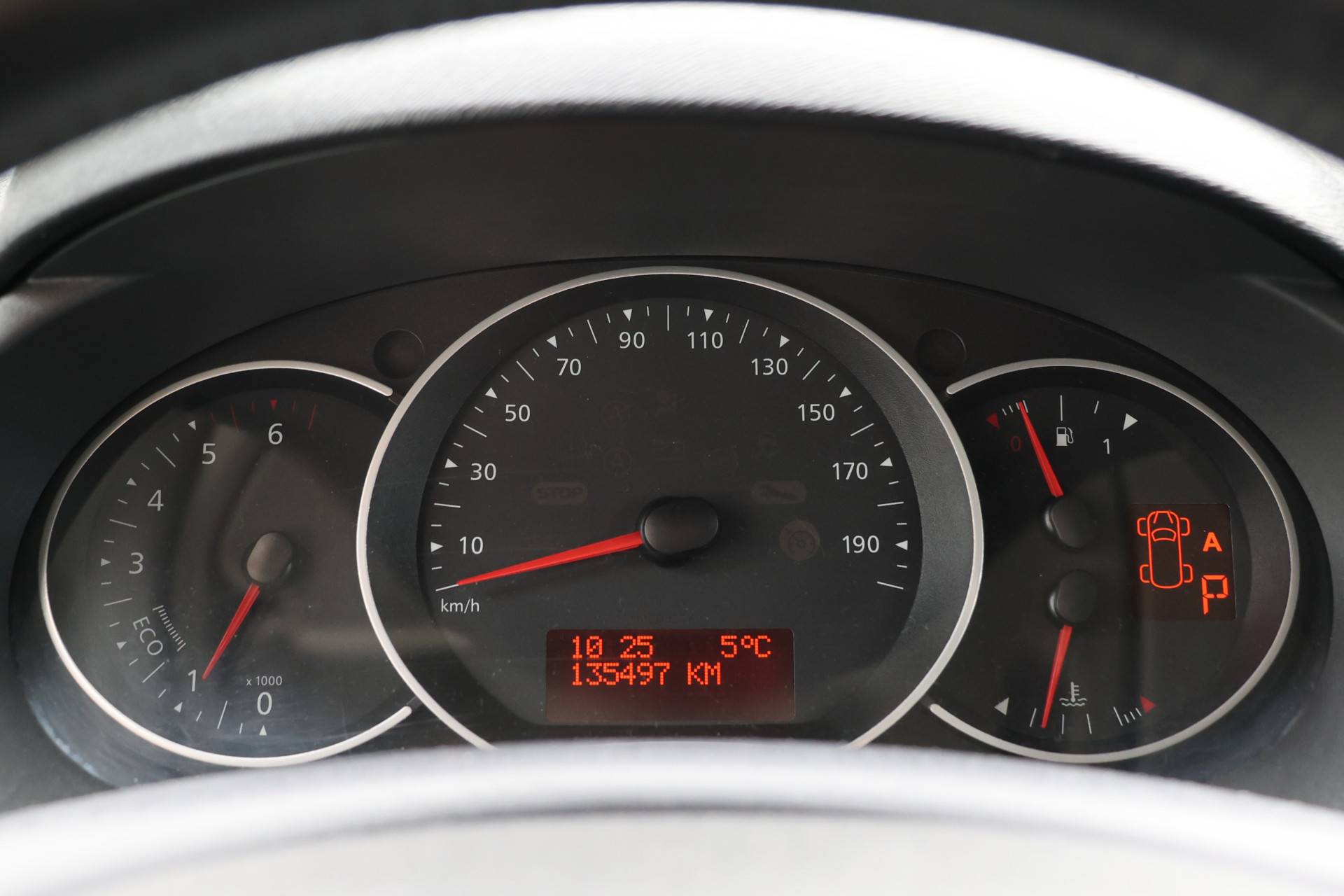 Een optie die de veiligheid verhoogt, is de bediening vanaf het stuur van het audiosysteem. Op een drukke weg heeft u soms ogen in uw achterhoofd nodig. De sensoren aan de achterzijde nemen die functie over en geven een achteropkomend verkeer waarschuwing als een achterligger te dicht op u zit. Nooit te snel, altijd constant: dat is het voordeel van de aanwezige cruise control. Met één druk op de knop blaast de airconditioning een koele bries door het interieur. Ook is de Renault uitgerust met: centrale deurvergrendeling met afstandsbediening, boordcomputer en verstelbaar stuur.