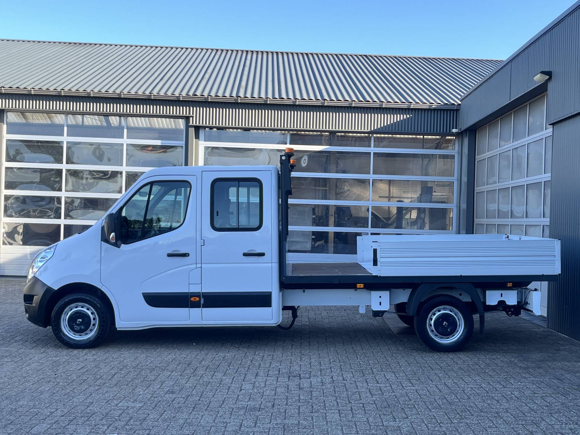 Een zeer nette Renault Master 2.3 DCi 130pk Pick-up Open laadbak Dubbele cabine met Airco Cruise controle Trekhaak 2500kg trekgewicht Telefoonvoorbereiding 6-Persoons pick-up p-up Euro 6