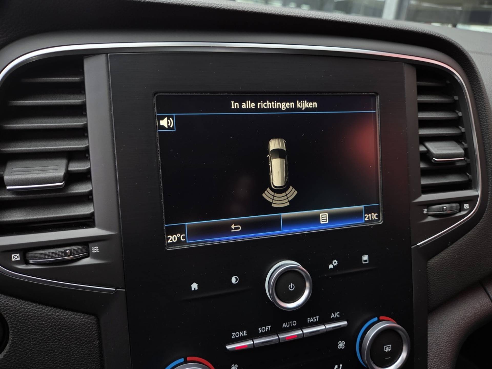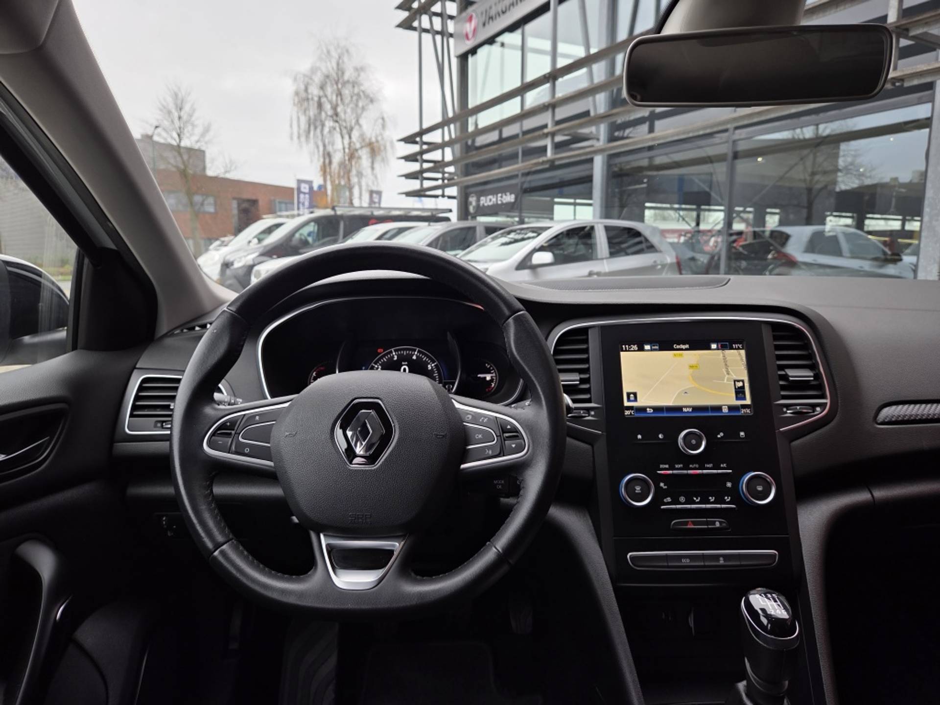 In deze Mégane Estate vindt u niet alleen schakelaars op het stuur om het full map navigatiesysteem te bedienen en het audio-installatiesysteem met DAB-ontvangst, maar er is ook spraakbediening. De auto is ook uitgevoerd met automatische airconditioning. Inparkeren en uitparkeren kost geen enkele moeite dankzij de parkeersensoren. Cruise control is aanwezig; prettig voor de lange einden. Een comfortabele optie is keyless entry. U kunt de portieren openen en afsluiten zonder de sleutel vast te houden. De uitrusting van deze auto is met lederen stuur en boordcomputer behoorlijk compleet.