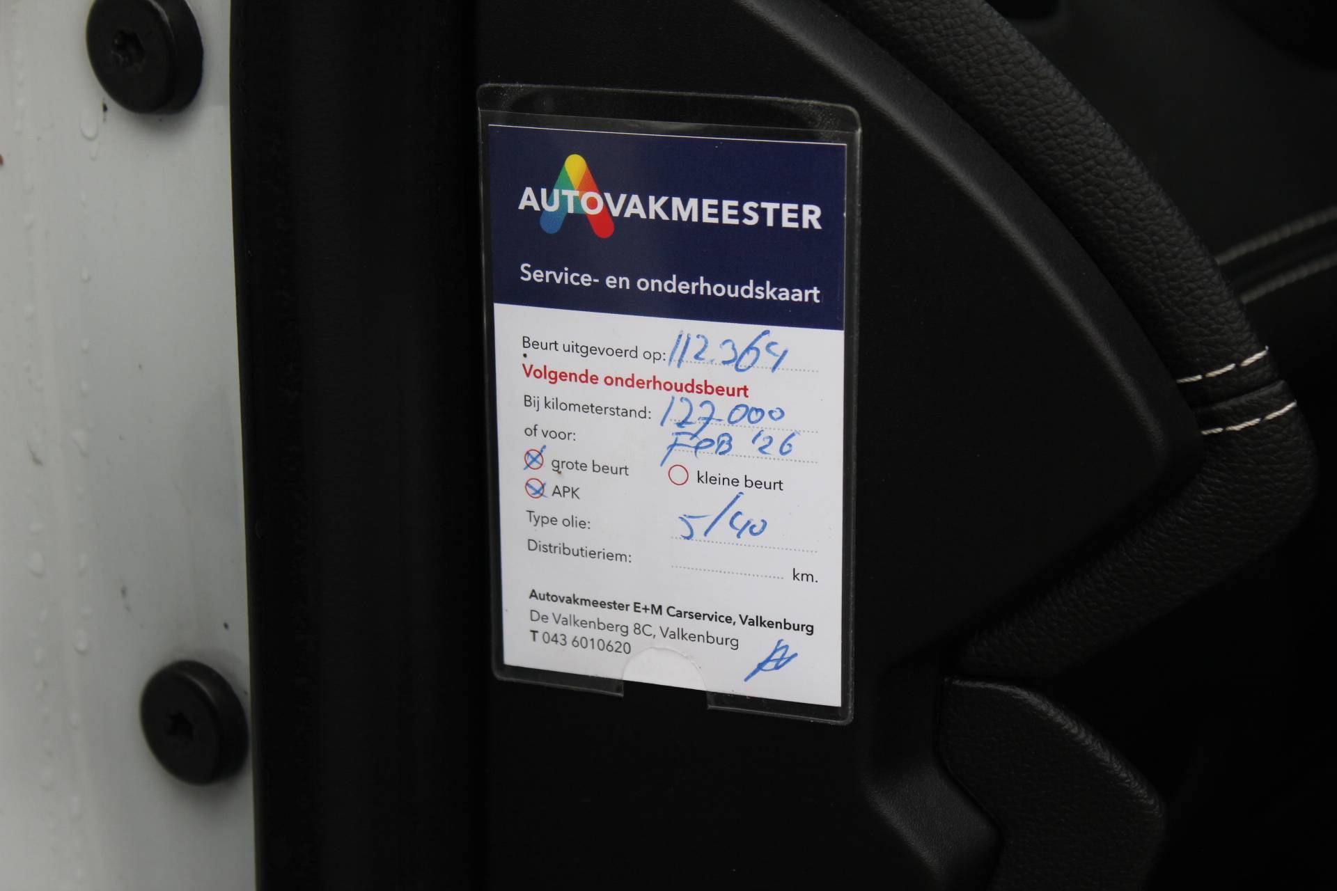 Laatste onderhoudsbeurt bij 112.364km!