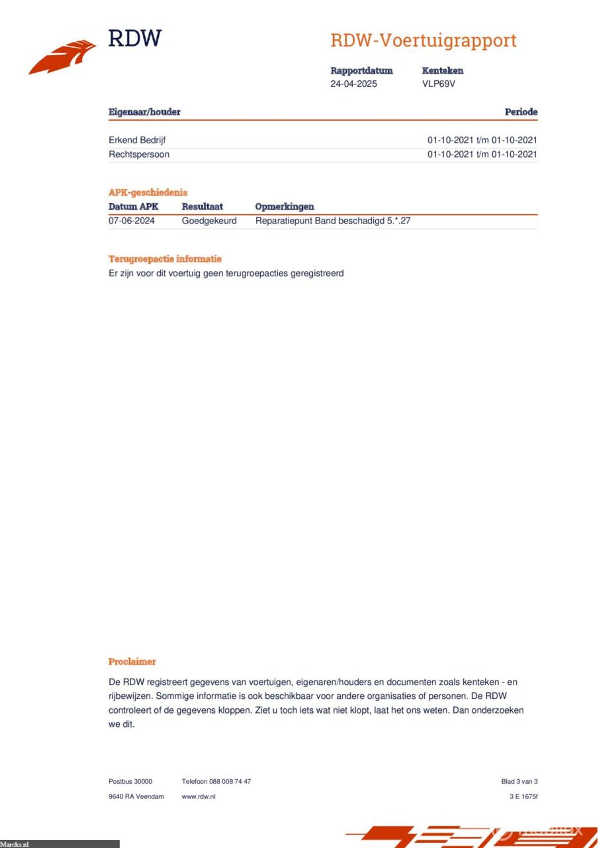 APK: Nieuwe APK bij aflevering