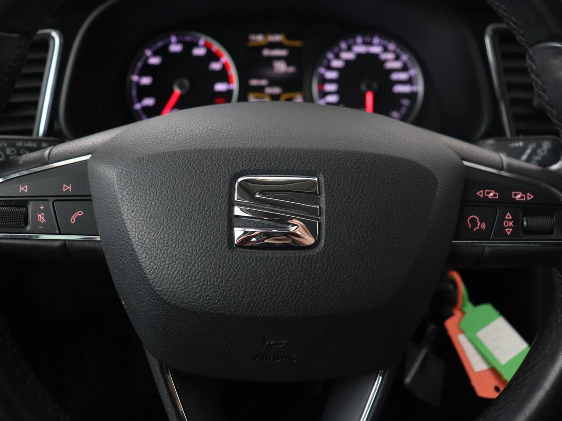 Wat is de onderhoudsstatus van deze auto? U checkt het snel, simpel en overal via uw smartphone. De automatische airconditioning zorgt voor een behaaglijk klimaat in de auto. Met de hulp van de parkeersensoren kost inparkeren en uitparkeren u geen enkele moeite. Achter het stuur van deze SEAT bent u niet alleen. De auto kijkt als het ware met u mee tijdens de rit. De regensensor schakelt de ruitenwissers in als het nodig is en de automatisch inschakelbare verlichting doet de lichten voor u aan. Voor de lange ritten is de cruise control een verademing. Met navigatiesysteem, automatisch dimmende binnenspiegel, lederen stuur, centrale deurvergrendeling met afstandsbediening, boordcomputer en lederen versnellingspook is deze auto helemaal compleet.