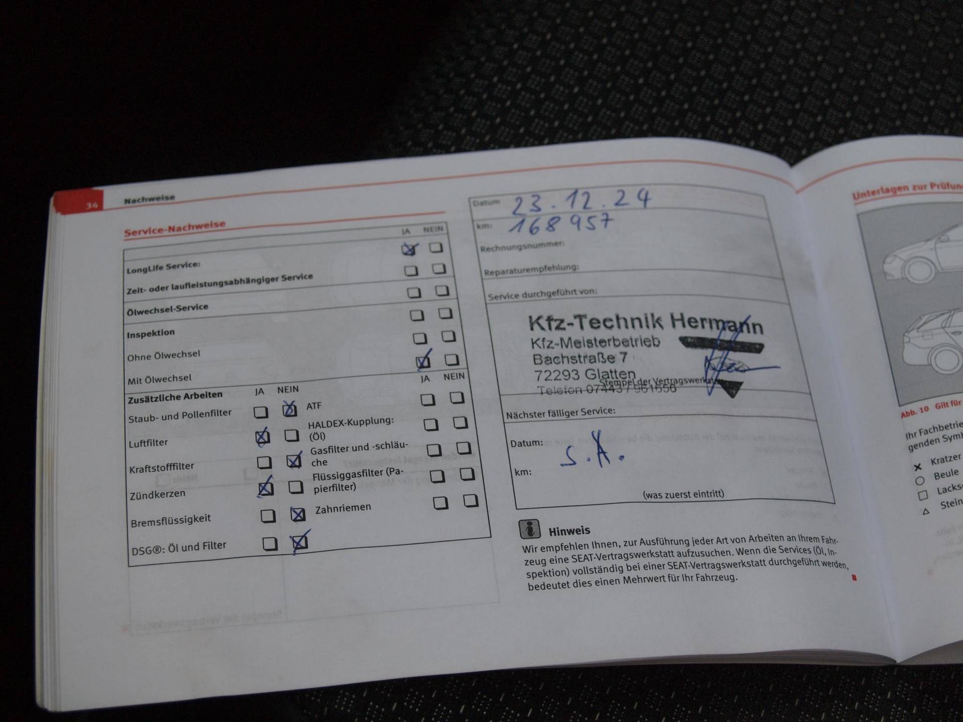 ✓ Onderhoudsboekje (fysiek)