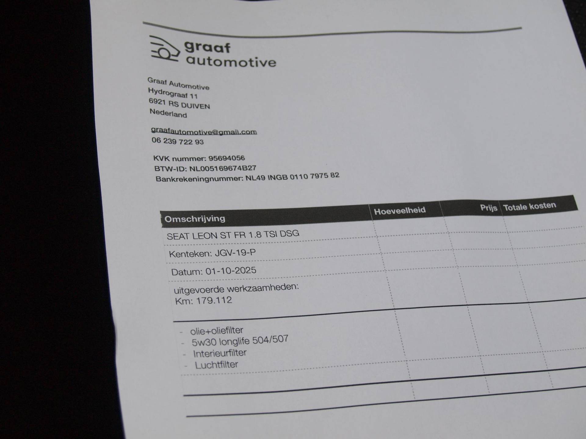 Garantiewerkzaamheden dienen door Vakgarage Heije te worden uitgevoerd.