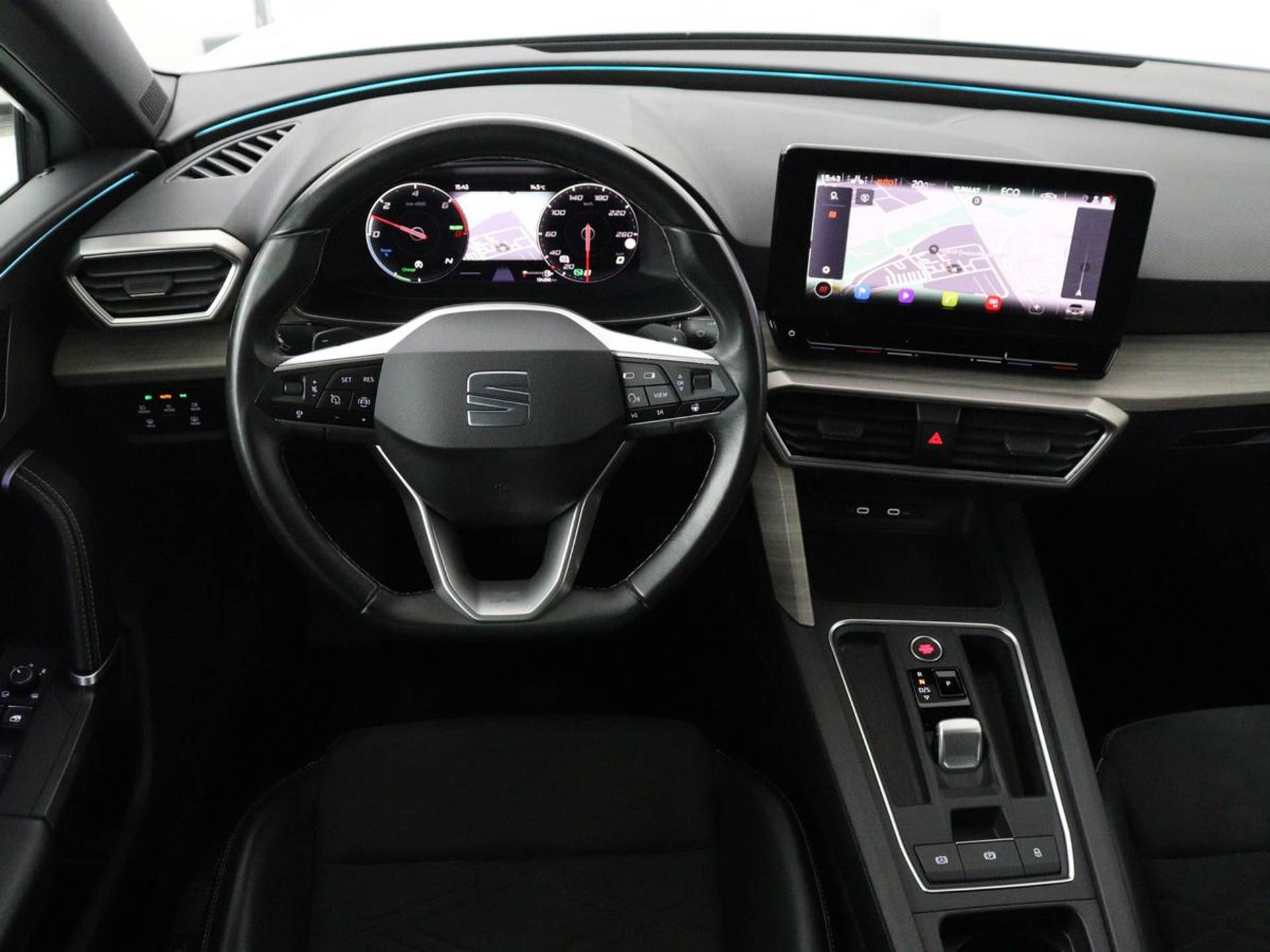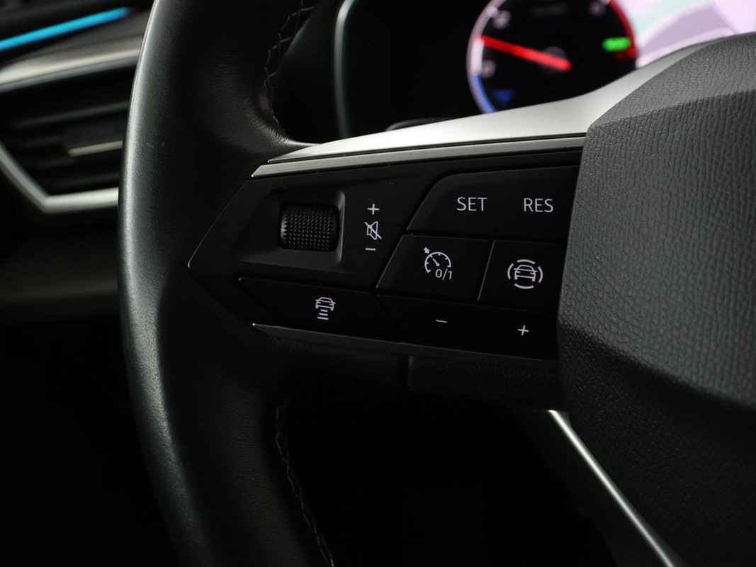 Een cockpit, een informatiecentrum... Wat is de cabine eigenlijk niet? Dankzij het digitale dashboard bent u van alles op de hoogte. Met adaptive cruise control houdt deze auto automatisch afstand tot uw voorligger. Pech oplossen en zelfs voorkomen? Gaat eenvoudig. Via Connected Services heeft u alle data in de hand, gewoon op de smartphone! Deze Seat is voorzien van spraakbediening voor het full map navigatiesysteem en voor het audiosysteem met DAB-ontvangst. Maar u kunt ook de knoppen op het stuur gebruiken. In een auto als deze kunt u niet zonder electronic climate control, zodat de temperatuur altijd goed is. En dan is deze auto ook nog eens voorzien van parkeersensoren achter, regensensor, keyless entry en automatisch dimmende binnenspiegel.
