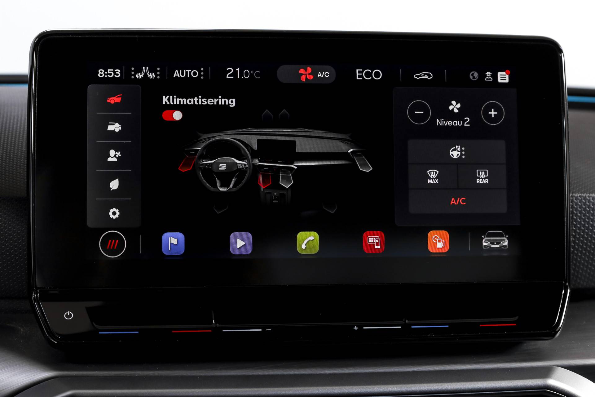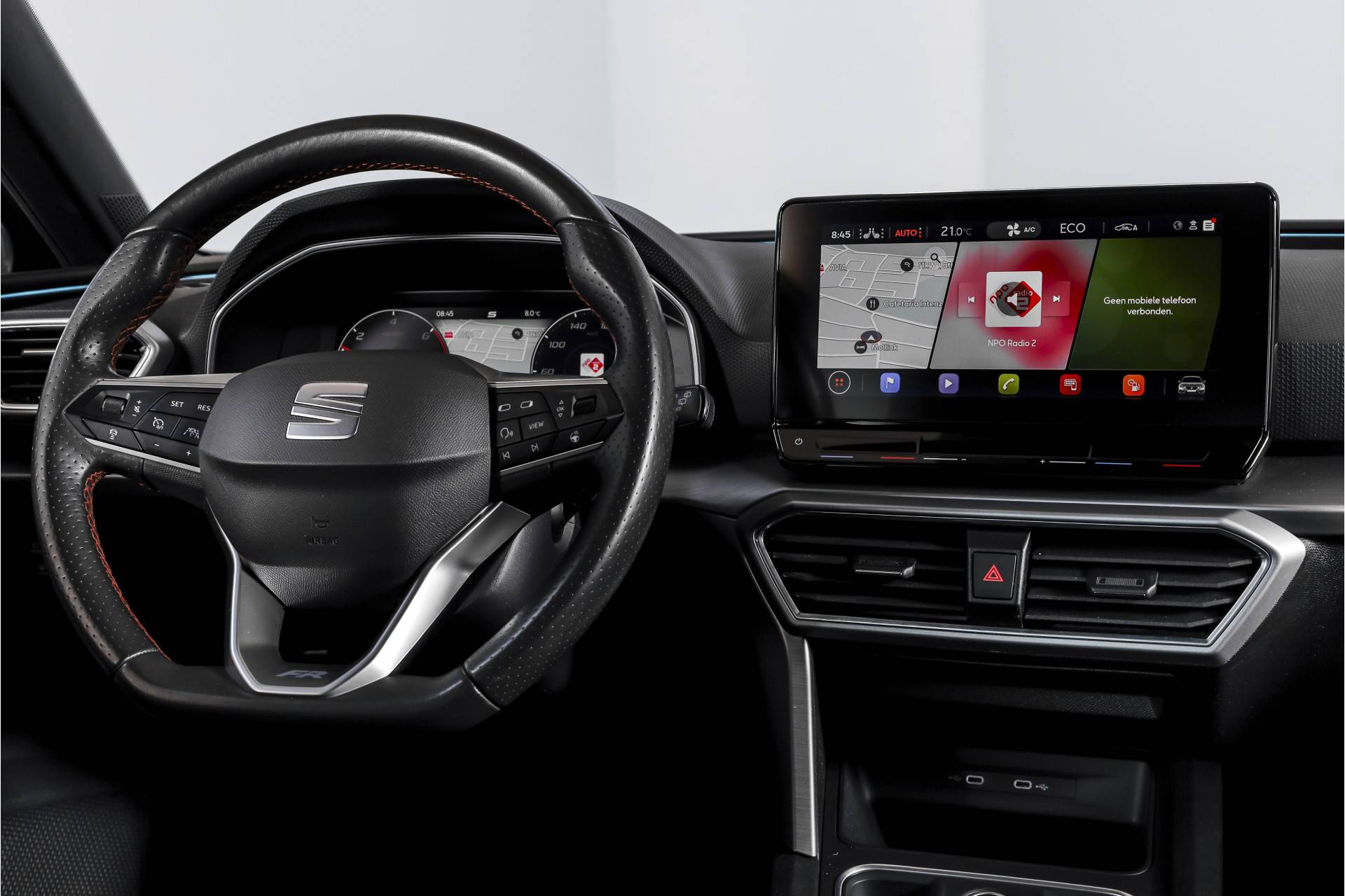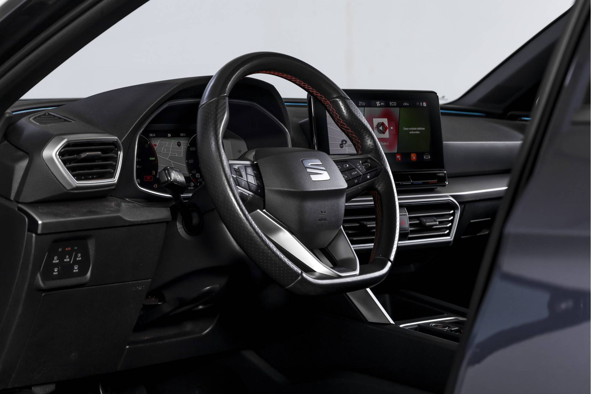 Qua comfort zit het goed met de airco automatisch, terwijl adaptieve cruise control en vermoeidheidsherkenning bijdragen aan ontspannen en veilige kilometers. Deze Leon is bovendien uitgerust met het Technology Pack, wat betekent dat hij beschikt over een draadloze telefoonlader, een verwarmd stuurwiel en verwarmde voorstoelen – prettig tijdens de koudere maanden.