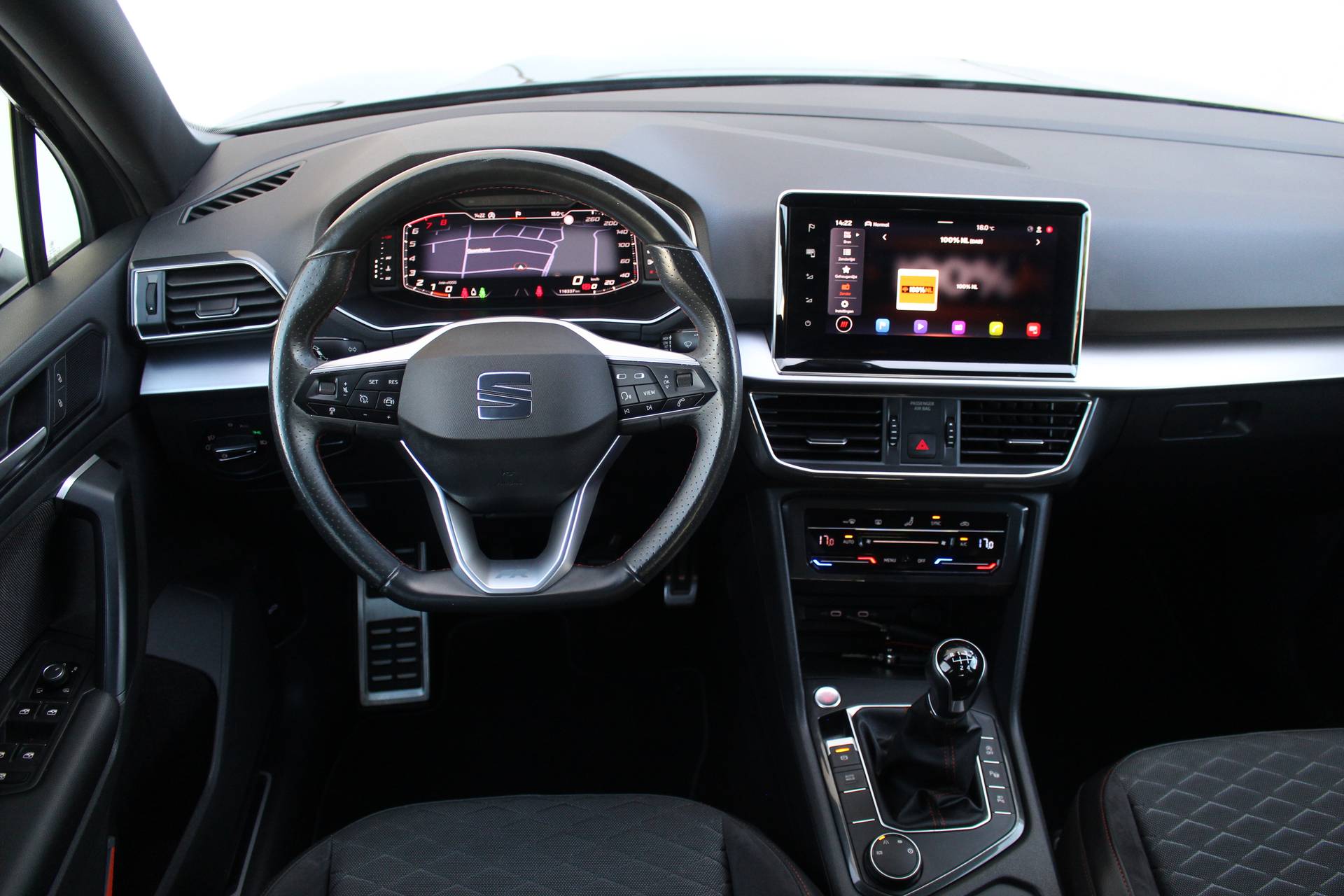 De SEAT Tarraco is gebouwd met hoogwaardige techniek en maakt het rijden van lange ritten, maar ook korte stukjes, tot een feestje. Met zijn benzinemotor en handgeschakelde zesversnellingsbak is dit een prima auto voor nog vele kilometers. Rijden met pit? Geen punt! De sportstoelen geven steun en stevigheid! In deze auto profiteert u onder andere ook van: 19 inch lichtmetalen velgen, LED koplampen, extra getint glas, in delen neerklapbare achterbank, LED-achterlichten en verstelbare lendensteunen. De slimme lay-out van het digitale dashboard zorgt voor een uitstekend overzicht onderweg. De 360 graden camera kan het blinde vlek probleem van de achteruitkijkspiegel oplossen, waardoor ongevallen worden voorkomen. Met adaptive cruise control houdt de auto zelfstandig afstand tot uw voorligger. Een veiligheidsverhogende optie waarmee u comfortabel onderweg bent. Waar u zelf ook bent, u staat altijd in contact met de auto via de app op uw smartphone. Zo controleert u uiteenlopende functies, ook op afstand. Even de smartphone erin klikken en de draadloze telefoonlader zorgt vanzelf voor nieuwe energie. Extra opties op deze auto zijn: full map navigatiesysteem, kruisend verkeer detectie, automatische airconditioning, regensensor, automatisch dimmende binnenspiegel en lederen stuur. Het zal u verbazen hoe deze auto in staat is om voor u de omgeving en het verkeer om u heen in de gaten te houden. De actuele snelheidslimiet, een inhaalverbod en andere verkeersborden; de verkeersborddetectie ondersteunt u tijdens elke rit. Het Lane-keeping systeem registreert permanent of u binnen de lijnen van de rijstrook blijft; dwaalt u onbedoeld af, dan waarschuwt het systeem en corrigeert de koers. Het forward collision warning-systeem berekent via een sensor de afstand tot het verkeer vóór u en komt in actie als er gevaar bestaat van een botsing. U bent mede dankzij dodehoekdetectie, hill hold functie, vermoeidheidsherkenning, frontale botsbescherming en bandenspanningcontrolesysteem steeds veilig onderweg. Bent u nieuwsgierig naar deze SEAT Tarraco? Laat het ons dan snel weten.