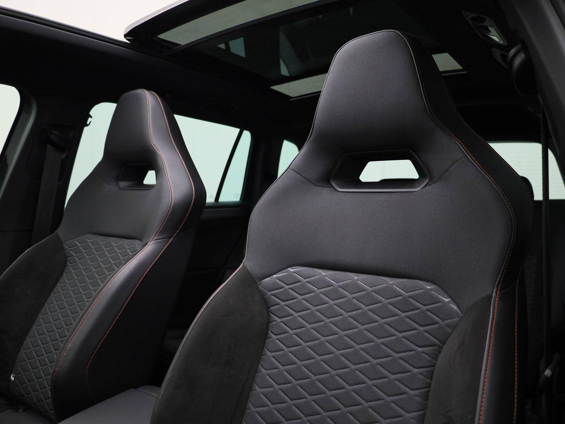 Deze Spanjaard van Duitse komaf zit vol 'auto emocion'. En daarmee overtuigt Seat al jaren. Deze auto uit 2022 heeft nauwelijks gereden, met een tellerstand van slechts 38576 kilometer. Onder de motorkap een elektromotor en een verbrandingsmotor. Veel duurzame kilometers dus! Geen gerommel bij het inladen; één druk op de knop en de elektrisch bedienbare achterklep gaat open. En precies zo gemakkelijk is het met het elektrisch bediende glazen panorama dak! Alles aan deze auto is ontworpen voor comfort, tot aan de stoelverwarming, verwarmbare achterbank, en verwarmbaar stuur. Opvallend zijn de stoere sportstoelen, die zorgen voor een onwrikbare zit in de scherpe bochten. Ook 19 inch lichtmetalen velgen, LED koplampen, adaptief dempingsysteem, donker getint glas achter, in delen neerklapbare achterbank en LED-achterlichten zijn aan boord.