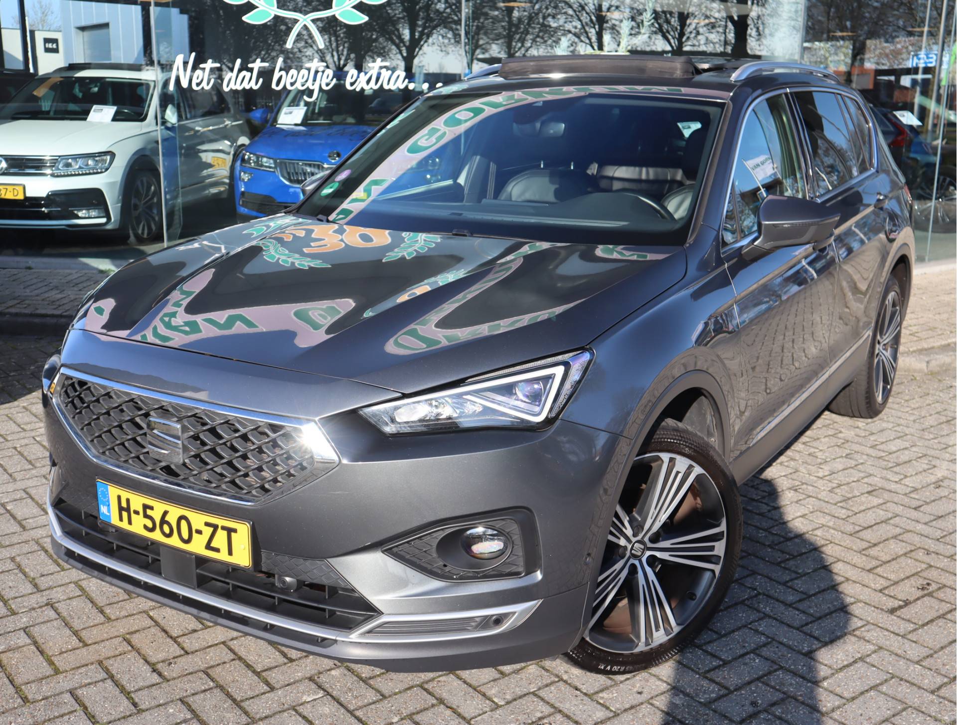 Origineel Nederlands geleverde en van 2e eigenaar afkomstige Tarraco in juiste kleurstelling, en zeer compleet: panoramadak, stoelverwarming voor en achter, adaptieve cruise control, elektrische stoelverstelling, lederen bekleding, 20 inch wielen, privacy glass, elek achterklep, en meer. Complete onderhoudshistorie aanwezig.