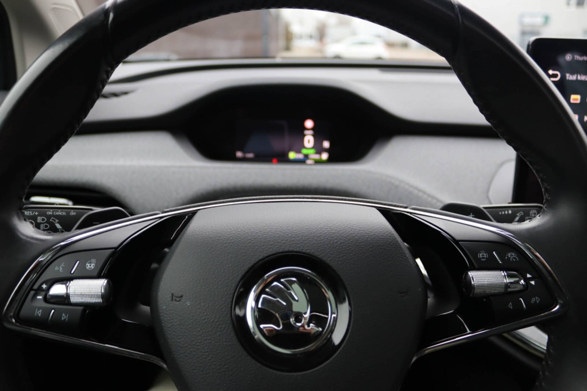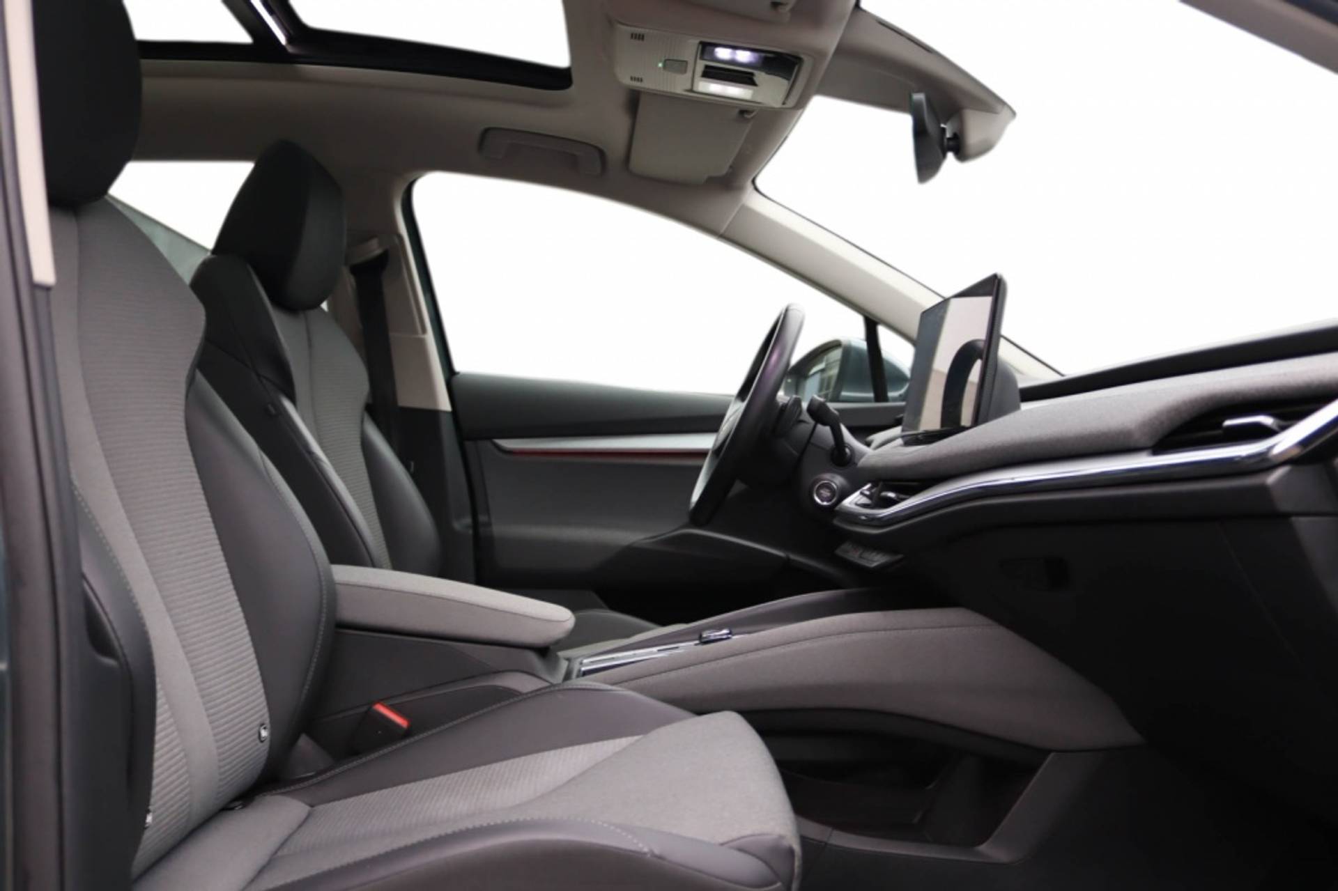 Het exterieur van deze Enyaq is voorzien van een prachtige metallic lak die de auto een unieke uitstraling geeft. De koplamp LED met adaptieve lichtverdeling (AFS) zorgt niet alleen voor optimale zichtbaarheid, maar geeft de auto ook een moderne look. Met het Transport-pakket ben je altijd voorbereid om al je spullen met gemak te vervoeren, terwijl het uitrustingspakket: Parkeren het parkeren een fluitje van een cent maakt. De wielbasis van 2765 mm zorgt voor een stabiele en comfortabele rijervaring, terwijl het antiblokkeersysteem (ABS) de veiligheid op de weg waarborgt.