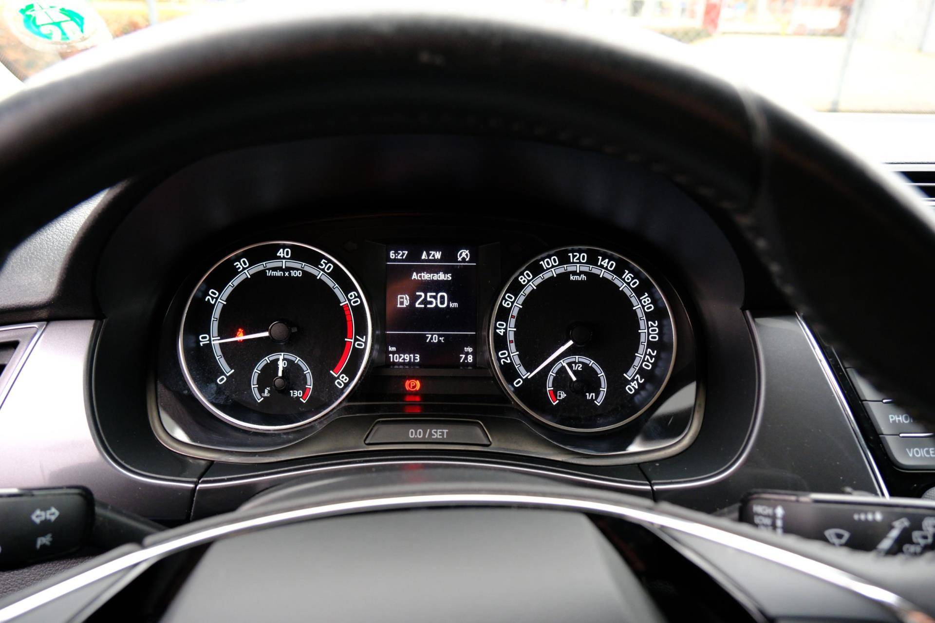 Naast handmatige bediening kunt u belangrijke functies met uw stem bedienen dankzij de ingebouwde spraakbediening. Kaartlezen is verleden tijd, dankzij het aanwezige navigatiesysteem. Geniet van een ruime selectie digitale radiostations met de DAB-ontvanger. De aanwezige parkeersensoren zijn de ultieme hulp om te laten weten hoeveel ruimte er nog is om te manoeuvreren. Voor de lange ritten is de cruise control een verademing. U bent in deze Skoda ook voorzien van airconditioning, lederen stuur, centrale deurvergrendeling met afstandsbediening, boordcomputer en lederen versnellingspook.