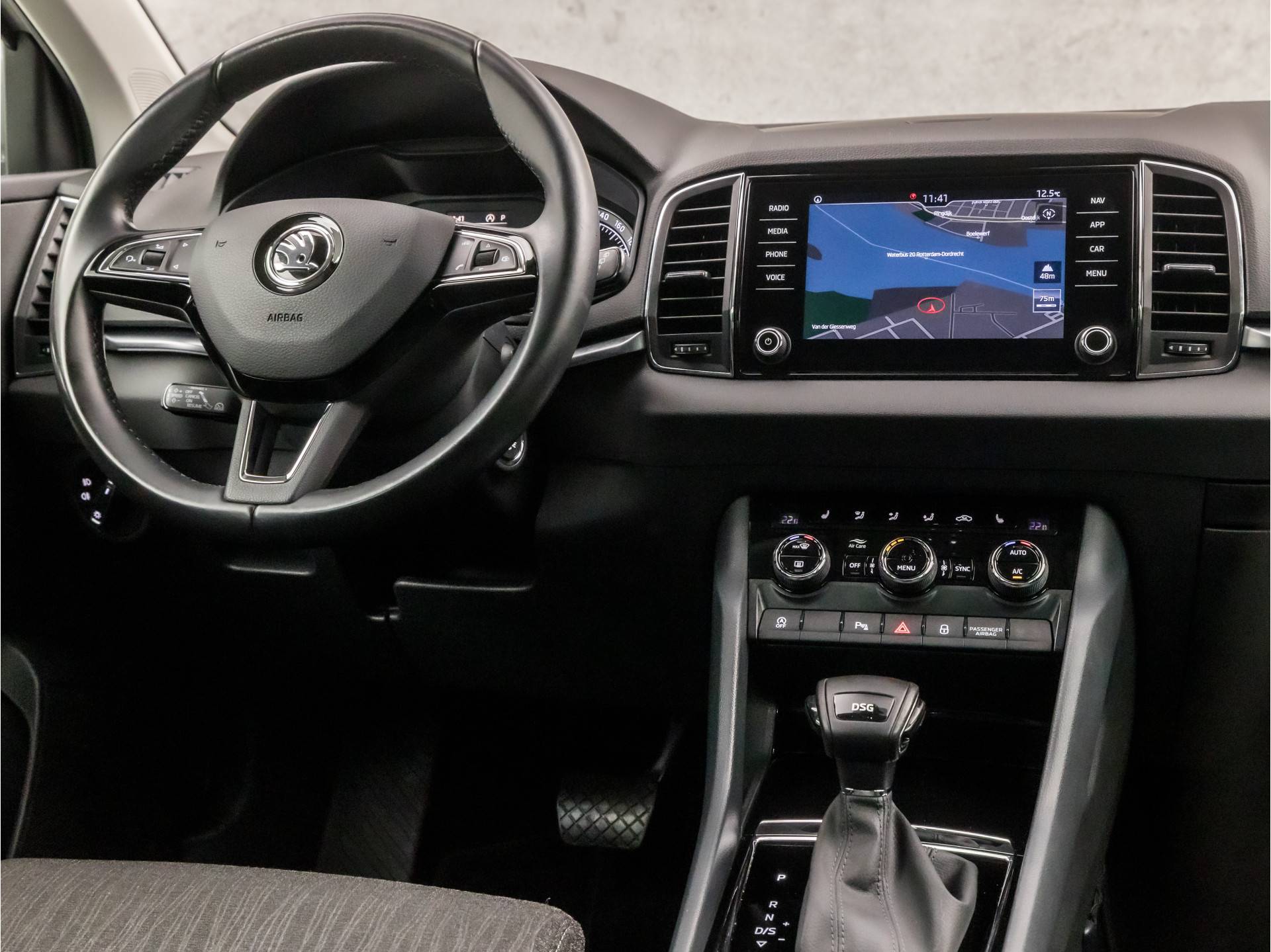 Met adaptive cruise control houdt de auto zelfstandig afstand tot uw voorligger. Een veiligheidsverhogende optie waarmee u comfortabel onderweg bent. Als u regelmatig met een aanhanger of een fietsendrager op pad bent, is de afneembare trekhaak een praktische extra. Terwijl het navigatiesysteem met harde schijf de ideale route voor u uitstippelt, geniet u van de kwaliteit van het audio-installatiesysteem met DAB-ontvangst. De bediening is bovendien gemakkelijk via knoppen op het stuur of via spraak. Kabelkluwens en stekkerslingers van smartphones zijn hier niet aan de orde. De draadloze oplaadmogelijkheid voor telefoons maakt opladen strak, simpel en snel. U verwacht natuurlijk automatische airconditioning in deze auto, en die is er dan ook. U bent in deze ŠKODA ook voorzien van WIFI-hotspot, sportstuur met schakelpaddels, parkeersensoren voor en achter, regensensor, keyless entry en automatisch dimmende binnenspiegel.