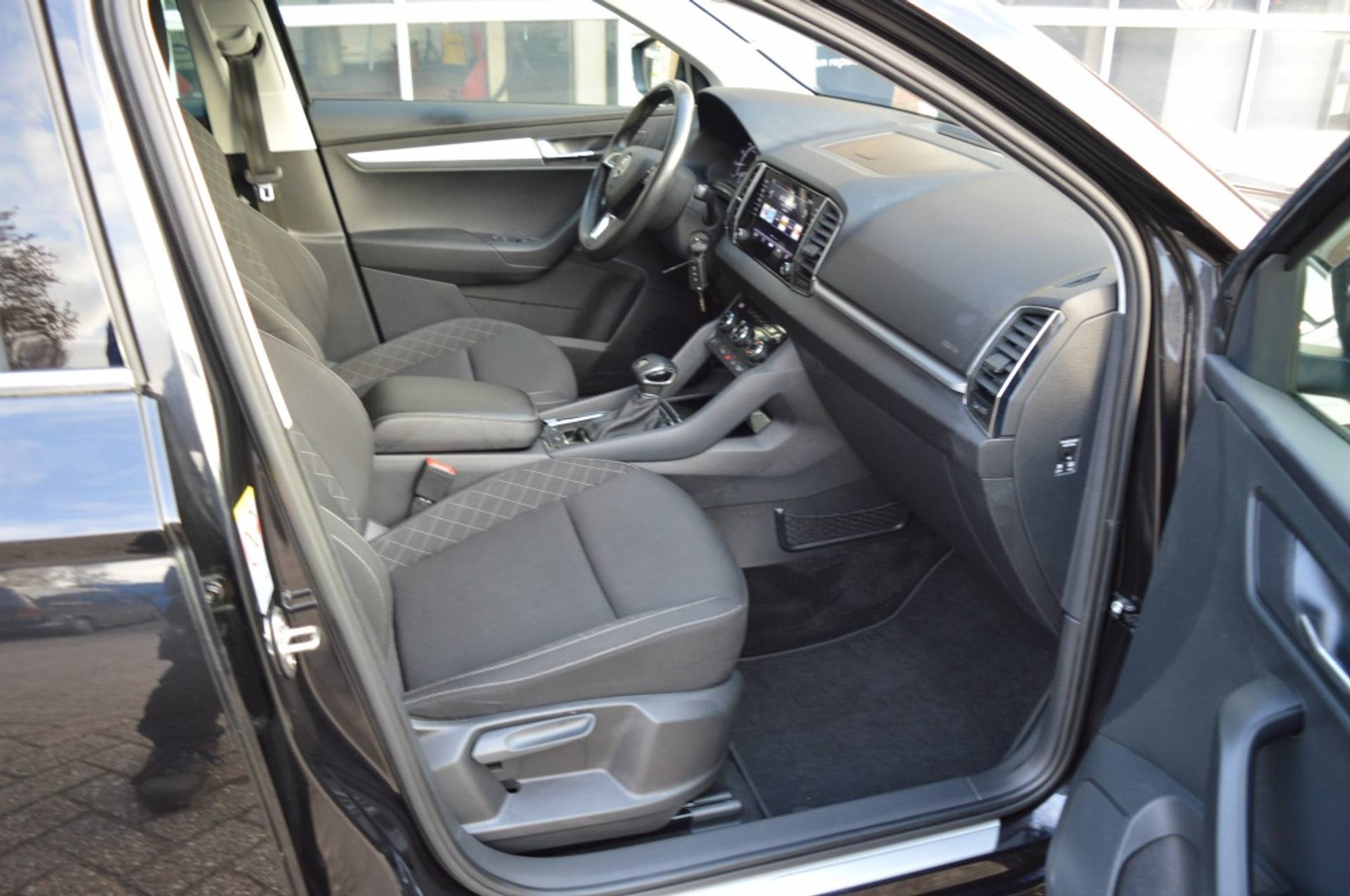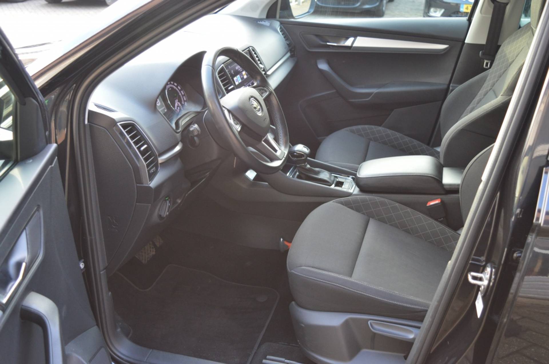 De Skoda Karoq is niet alleen veilig en comfortabel, maar ook nog eens een lust voor het oog. De strakke zwarte kleur in combinatie met de metallic lak maken deze SUV een echte blikvanger. De vijf deuren zorgen ervoor dat instappen en uitstappen moeiteloos verloopt, terwijl het ruime interieur voldoende plaats biedt voor al jouw passagiers en bagage.