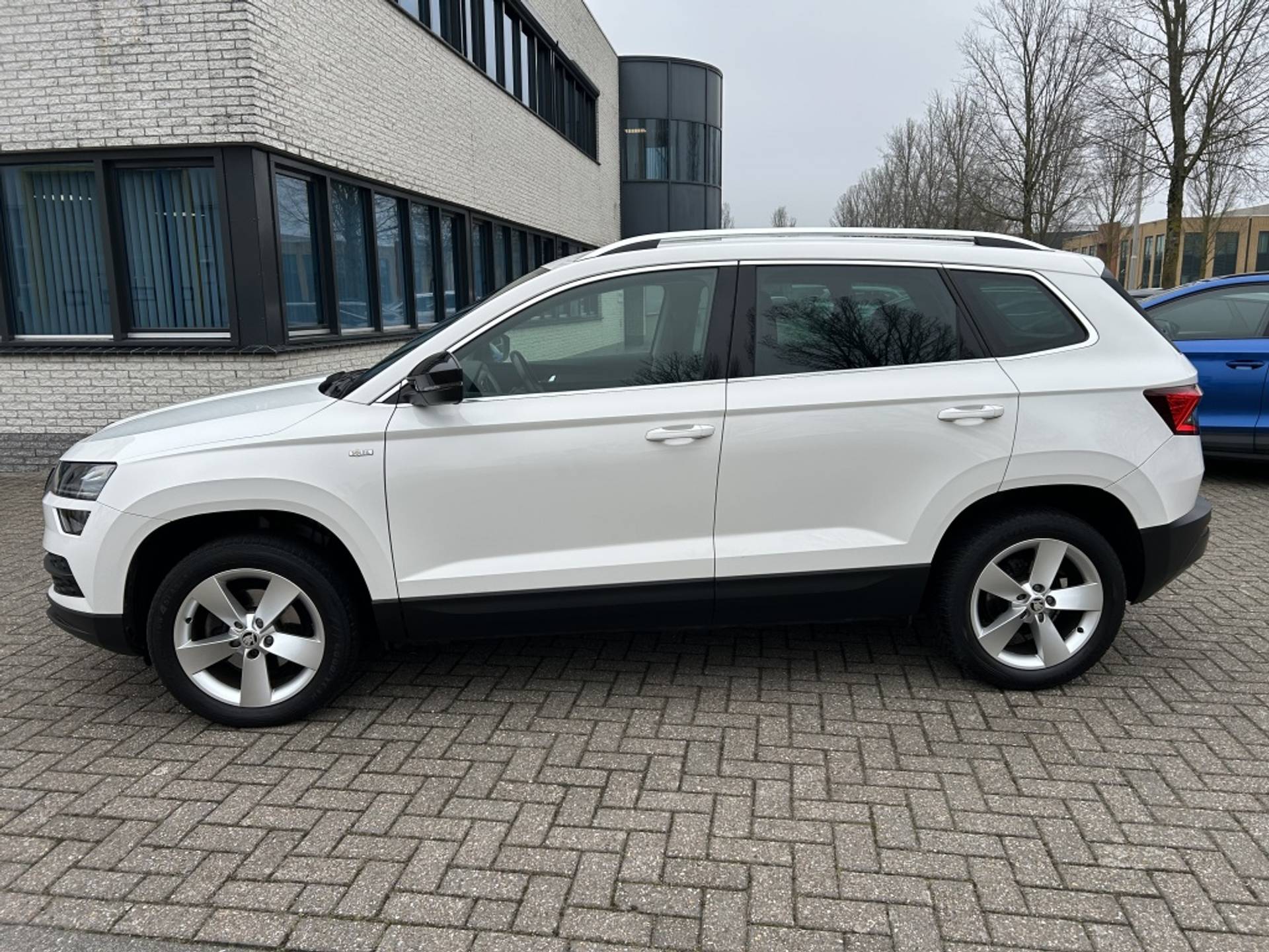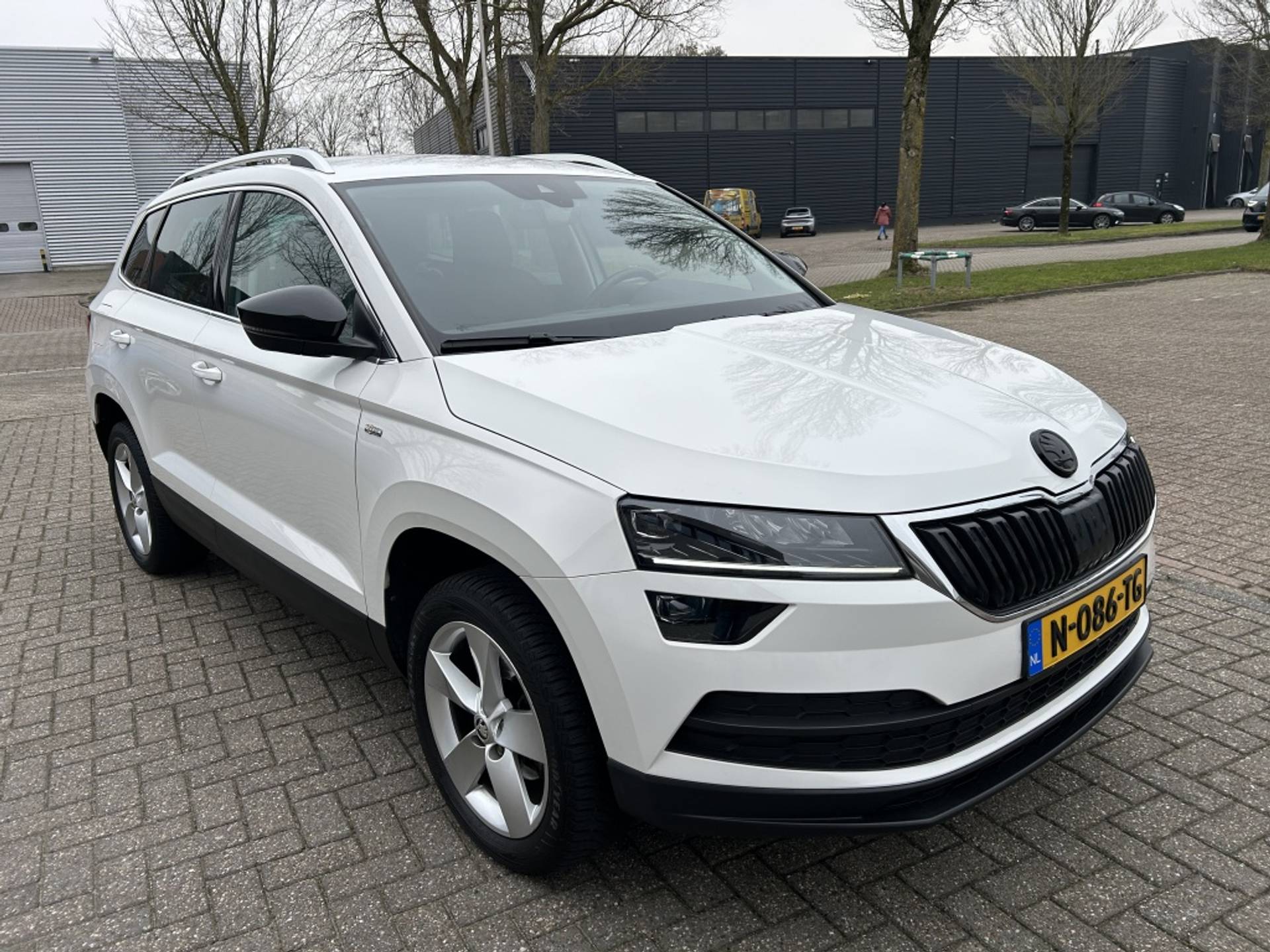 Te koop aangeboden: zeer nette, luxe en dealer onderhouden Skoda Karoq 1.0 TSI Style Business 116 PK uitvoering met veel opties, inklapbare trekhaak en voorzien volledig onderhoud.
