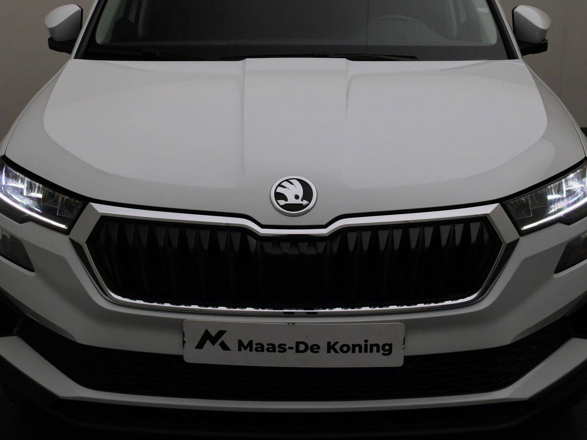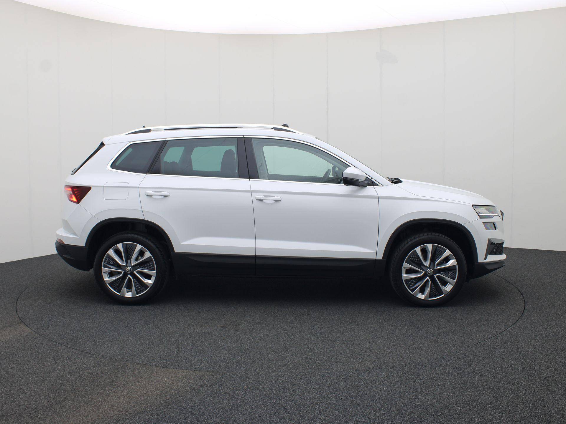 Stijlvol en veelzijdig, dat zijn misschien wel de belangrijkste kenmerken van de Skoda Karoq. Dit exemplaar is bovendien voorzien van verschillende systemen die het autorijden aangenamer en veiliger maken. De benzinemotor met automatische transmissie levert uitstekende rijprestaties. Voor extra lichtinval en een frisse luchtstroom zorgt het elektrisch bediende panoramadak. De elektrische achterklep opent met een druk op de knop, zodat u gemakkelijk toegang heeft tot de bagageruimte. Tot de uitrusting van deze Skoda behoren ook 18 inch lichtmetalen velgen, LED koplampen, in hoogte verstelbare voorstoelen, extra getint glas, in delen neerklapbare achterbank en LED-achterlichten.