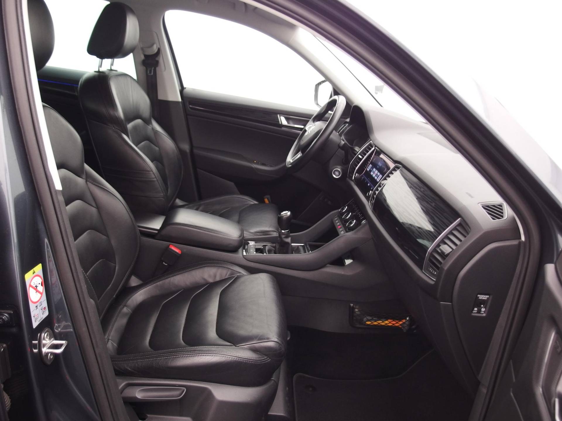 Deze Skoda Kodiaq maakt een voortreffelijke indruk. Hiermee mag je gezien worden in de stad én op de weg! In deze auto vindt u een benzinemotor en een handgeschakelde zesversnellingsbak. Heerlijk comfortabel zitten, en genieten van stijlvolle kwaliteit? Deze auto heeft een fraai lederen interieur. Het comfort van de stoelverwarming geeft in koude dagen nét dat beetje extra. De uitmonstering van deze auto wordt gecompleteerd door onder meer 19 inch lichtmetalen velgen, LED koplampen, dakspoiler, donker getint glas achter, in delen neerklapbare achterbank en LED-achterlichten.