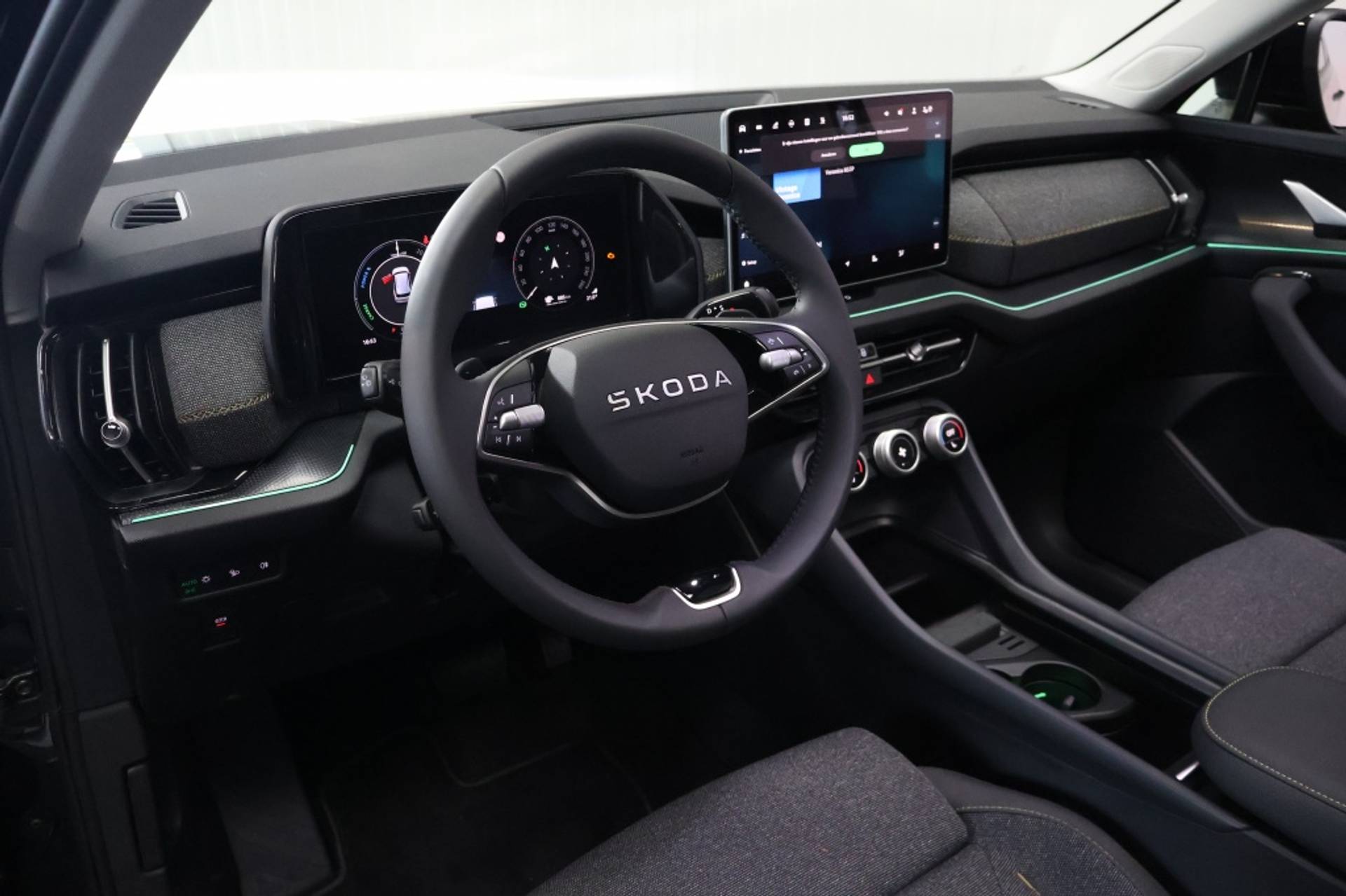 Met het hybride 150 kW (Motor 1,5 L - 110 kW TSI) systeem van de Skoda Kodiaq Kodiag kunt u zorgeloos en efficiënt rijden, terwijl u geniet van de krachtige prestaties van de 150 PK sterke motor. De koplampen zijn voorzien van energiezuinige LED verlichting, waardoor u altijd goed zicht heeft op de weg, zelfs in het donker.