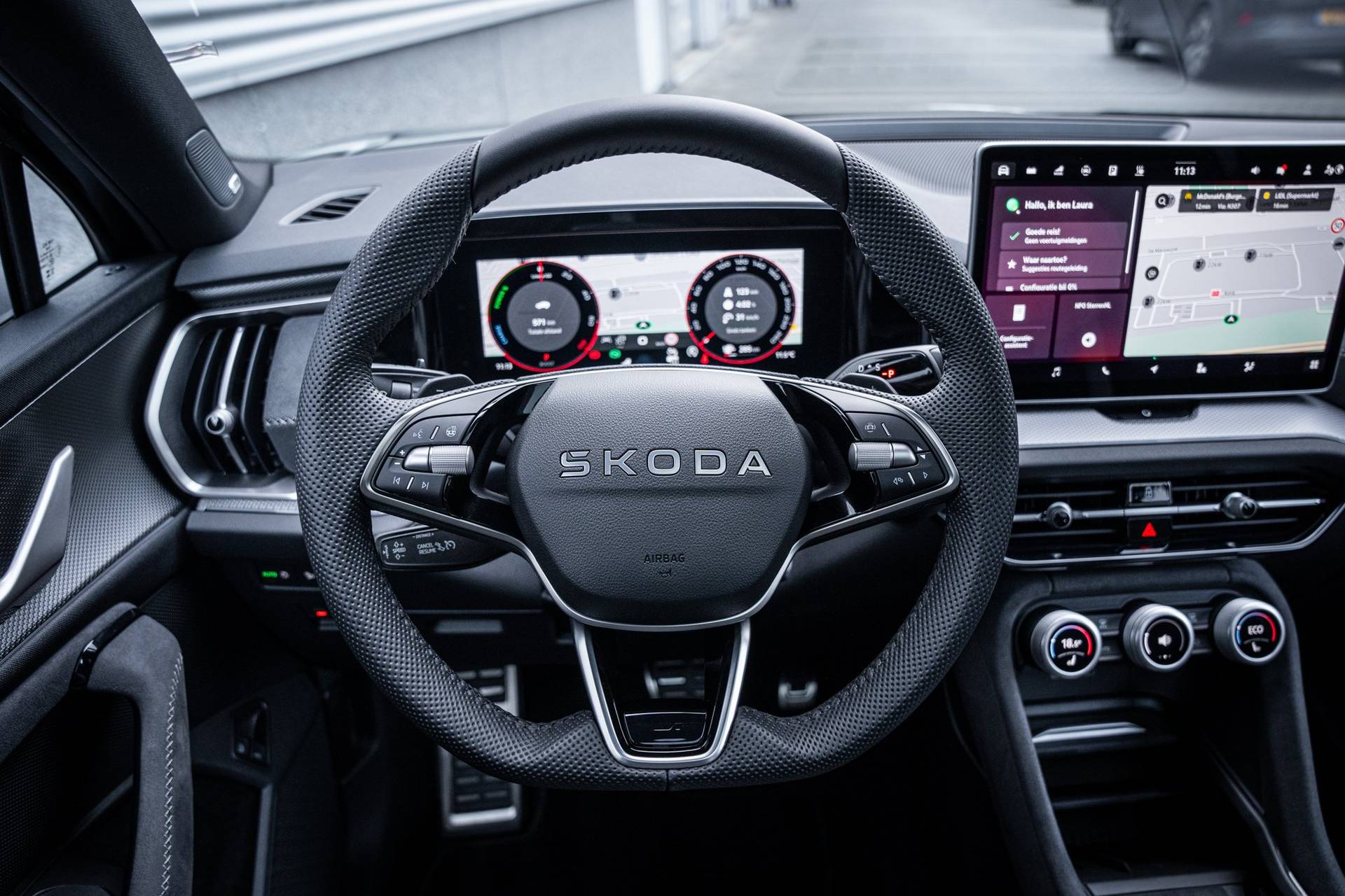 Betrouwbaar in kwaliteit, een topper in rijprestaties en qua conditie in blakende vorm. Deze Škoda Kodiaq staat voor u klaar! Het is vermeldenswaard dat deze auto maar 571 kilometer heeft gereden sinds 2025. Deze Škoda Kodiaq heeft in feite twee motoren: een voor benzine en een elektronische. Deze hybride oplossing biedt het beste van beide! Zit u goed? De stoelen zijn eenvoudig instelbaar dankzij de elektrische bediening met geheugen. Deze auto levert de ultieme rijervaring met eersteklas functies zoals stoelverwarming, een verwarmbare achterbank en een verwarmbaar stuur. Het interieur baadt in daglicht dankzij het elektrisch bediende glazen panoramadak. Met een druk op de knop gaat de elektrische achterklep open. De slimme koplampen gebruiken de allernieuwste matrix LED-verlichting. Altijd maximaal zicht, nooit verblinding bij de tegenligger. Bij de rijke uitrusting horen ook 20 inch lichtmetalen velgen, geluidsisolerende ramen, dakspoiler, in delen neerklapbare achterbank, LED-achterlichten en verstelbare lendensteunen. Het digitale dashboard zorgt voor een super functionele display van reisinformatie. 'Boem is ho'? Niet met deze achteruitrijcamera. U ziet achter net zo goed als voor en krijgt een duidelijk geluidssignaal! Adaptive cruise control is een comfortabele en veilige optie. Het systeem reguleert de snelheid en houdt automatisch afstand tot uw voorligger. Even niks om achter de auto te hangen? Dan is de elektrisch inklapbare trekhaak superhandig. Functies activeren en storingen opsporen? Bij deze auto gaat het eenvoudig via uw smartphone. Overal en altijd. Ook dashboard met spraakbediening, premium audiosysteem, navigatiesysteem, automatische airconditioning, draadloos opladen en DAB ontvangst zijn aan boord. Pragmatisch en veilig als deze auto is, beschikt hij over diverse veiligheidssystemen. Met het Lane-keeping systeem komt u nooit per ongeluk buiten de rijstrook. Vermoeidsheidsherkenning neemt tekenen van vermoeidheid waar bij de bestuurder. Het systeem voorkomt dat er daardoor ongelukken gebeuren. Dankzij veiligheidsvoorzieningen als dodehoekdetectie, frontale botsbescherming en bandenspanningcontrolesysteem, bent u steeds veilig onderweg. U bent nieuwsgierig? Bel of mail ons dan direct om een proefrit met deze Škoda te reserveren.