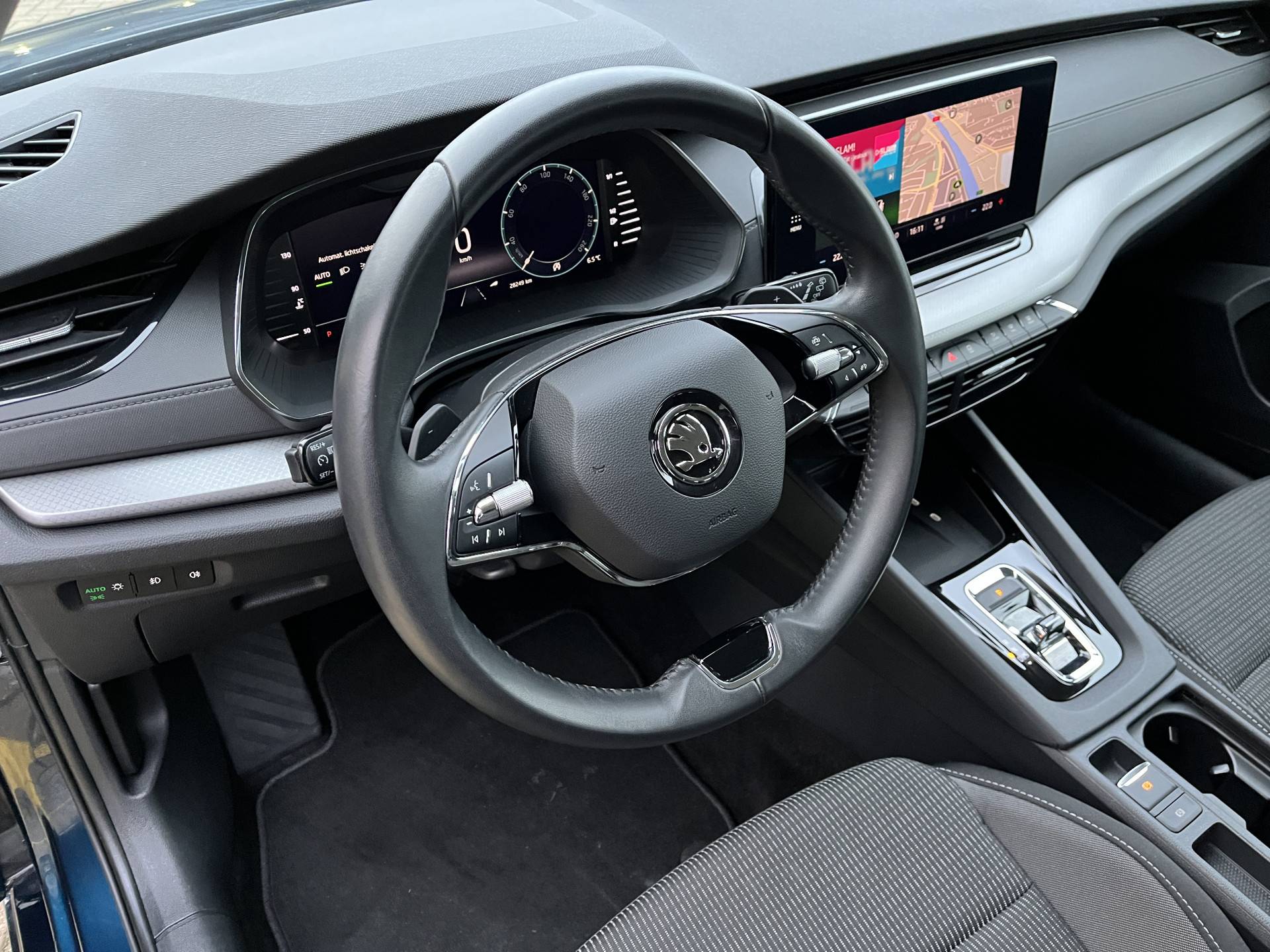 Het digitale dashboard ondersteunt je voortdurend met actuele, bruikbare informatie. Naast handmatige bediening kun je belangrijke functies met je stem bedienen dankzij de ingebouwde spraakbediening. Even niks om achter de auto te hangen? Dan is de elektrisch inklapbare trekhaak superhandig. Navigatie, onderhoudsstatus, vergrendeling, audio... de mogelijkheden van remote services zijn haast oneindig. Ook deze auto laat zich bedienen en analyseren via je smartphone! Zorgeloos en geconcentreerd rijden? Het full map navigatiesysteem wijst de weg! Met WIFI-hotspot, automatische airconditioning, schakelpaddles aan het stuur, draadloos opladen, DAB ontvangst en parkeersensoren voor en achter is deze ŠKODA helemaal compleet.