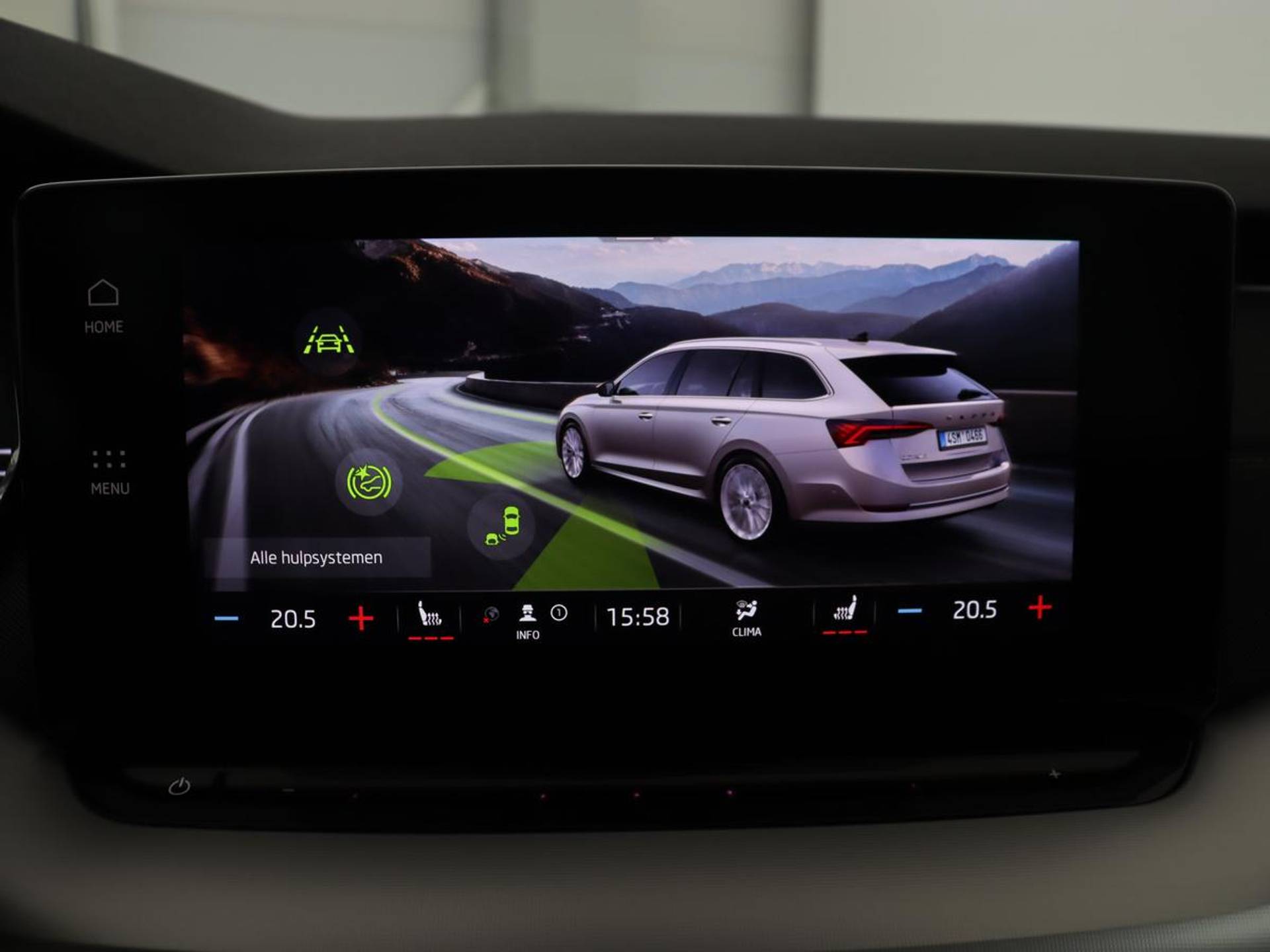 Deze Skoda is voorzien van verschillende intelligente veiligheidsvoorzieningen. Ze kijken tijdens het rijden als het ware met u mee, ze signaleren potentieel gevaarlijke situaties en in een aantal gevallen kunnen ze ook ingrijpen. Met het Lane-keeping systeem komt u nooit per ongeluk buiten de rijstrook. Het forward collision warning-systeem is constant alert en detecteert via sensor de afstand tot voorliggers. Wordt die te klein, dan volgt een automatische waarschuwing. Een belangrijk veiligheidssysteem in deze auto is de vermoeidheidsherkenning, die u een duidelijk signaal geeft wanneer u achter het stuur in slaap dreigt te vallen. Bovenop deze veiligheidsfeatures heeft deze Skoda bovendien dodehoekdetectie, hill hold functie, autonoom remsysteem en bandenspanningcontrolesysteem.
