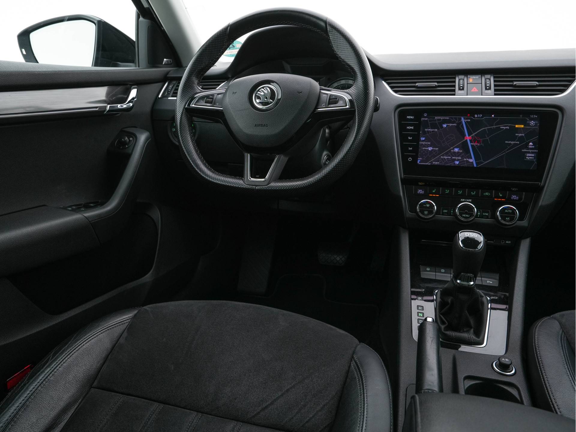 De ŠKODA Octavia 1.0 TSI Greentech Style Business Automaat combineert efficiëntie, comfort en sportieve luxe in één zeer complete zakelijke uitvoering. Uitgevoerd in Black Magic Metallic met een hoogwaardig zwart leder/microvezel (Alcantara-stijl) interieur, voorzien van Dynamic- en Tech-pakket, 18” lichtmetalen velgen en moderne veiligheids- en infotainmentsystemen.