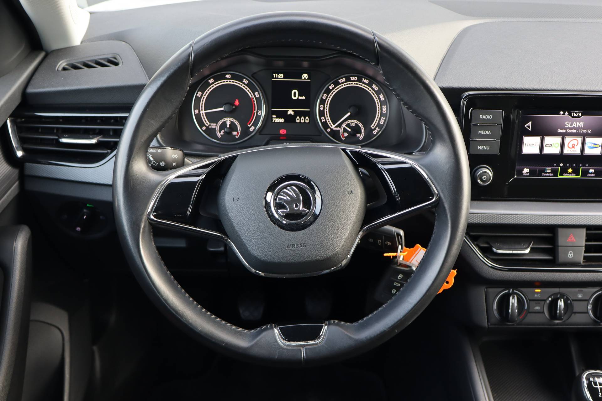 Bij het ontwerpen van de Škoda Scala stonden uw comfort en uw veiligheid centraal. Dit is een nieuwe auto, hij is nu direct leverbaar. Hij heeft een benzinemotor en een handgeschakelde vijfversnellingsbak. In deze Škoda profiteert u onder andere ook van: LED koplampen, in delen neerklapbare achterbank en LED-achterlichten. Kilometerstand? Oliepeil? Accuspanning? Allemaal te zien via de app. Overal. Altijd. Dankzij Connected Services. Wat uw muzieksmaak ook is, met DAB-radio is er altijd wat te kiezen. Perfect weergegeven via het aanwezige audiosysteem. Parkeersensoren zijn een handig hulpmiddel om parkeerschades te voorkomen. Lange stukken vermoeiend? Niet met de cruise control! Het spreekt voor zich dat u in deze auto ook airconditioning aantreft. Ook is de Škoda uitgerust met: centrale deurvergrendeling met afstandsbediening, boordcomputer en verstelbaar stuur. Pragmatisch en veilig als deze auto is, beschikt hij over diverse veiligheidssystemen. Met het Lane-keeping systeem gaat u nooit onbedoeld over de streep. Botsingen met een voorligger gebeuren relatief vaak. De forward collision warning slaat tijdig alarm als dat risico ontstaat, zodat u kunt ingrijpen. Verder is deze auto uitgerust met autonoom remsysteem en bandenspanningcontrolesysteem. Vanzelfsprekend leveren wij deze nieuwe auto met volledige fabrieksgarantie. We maken graag een afspraak met u om deze Scala bij ons te komen bekijken.
