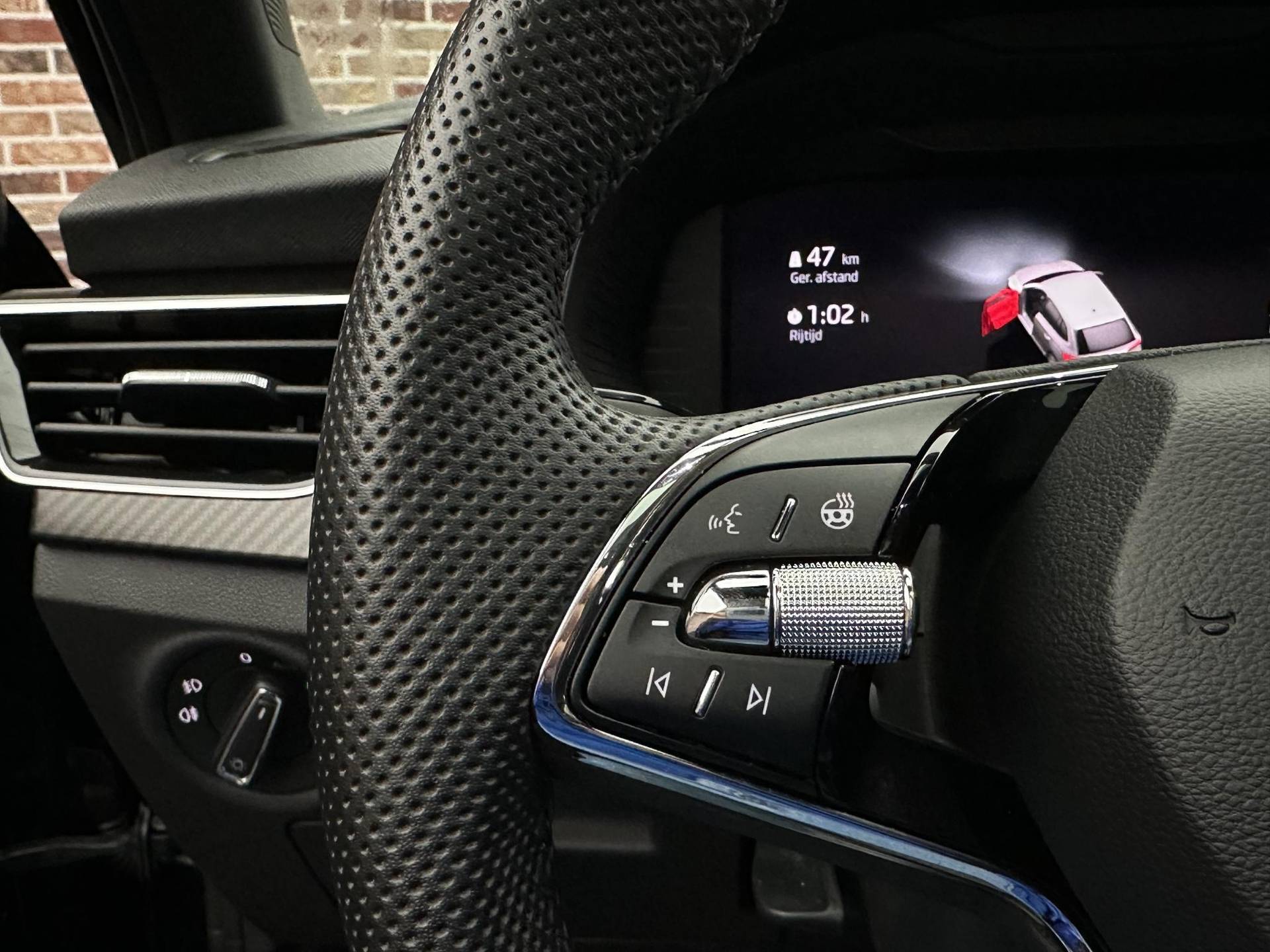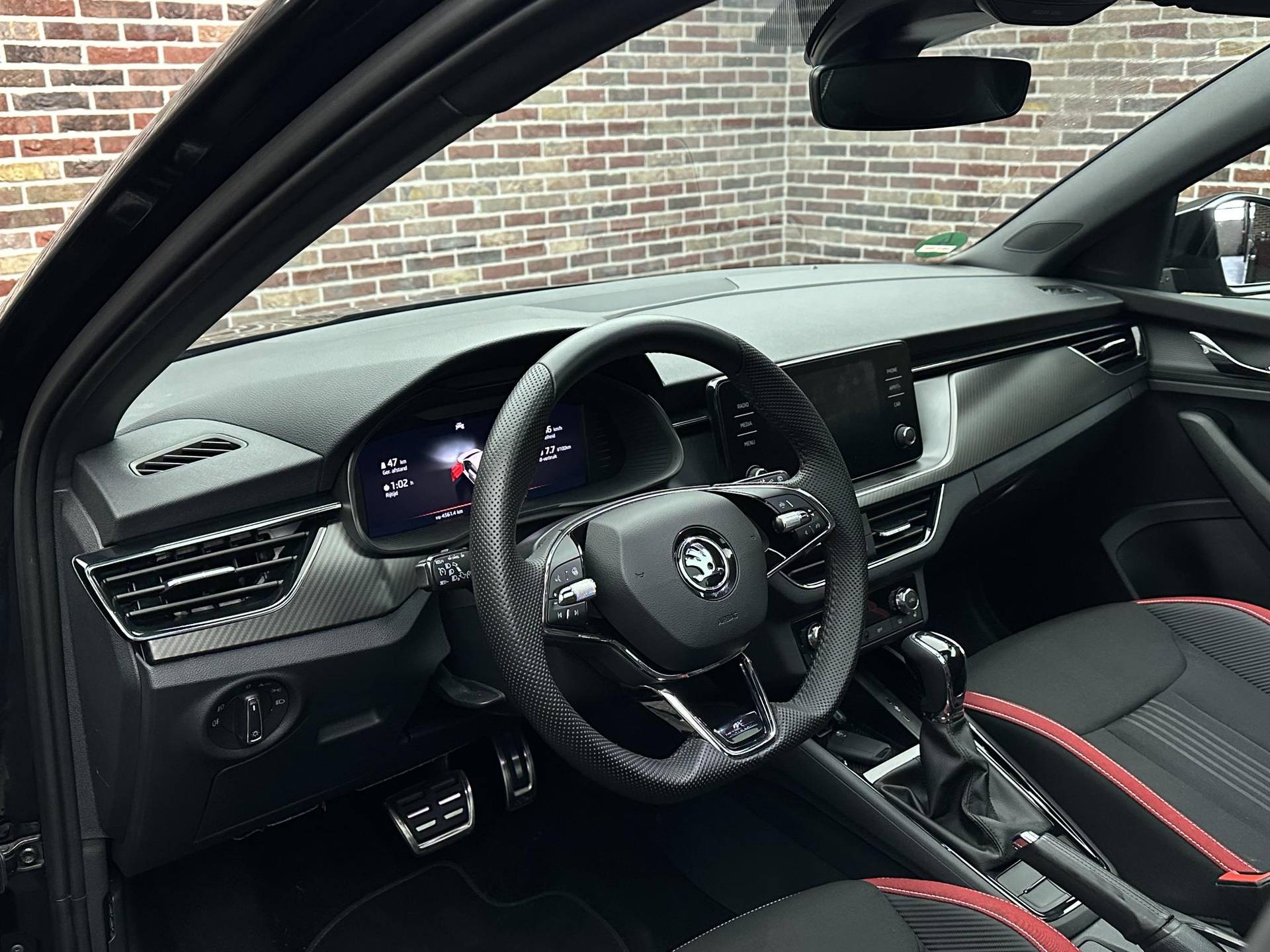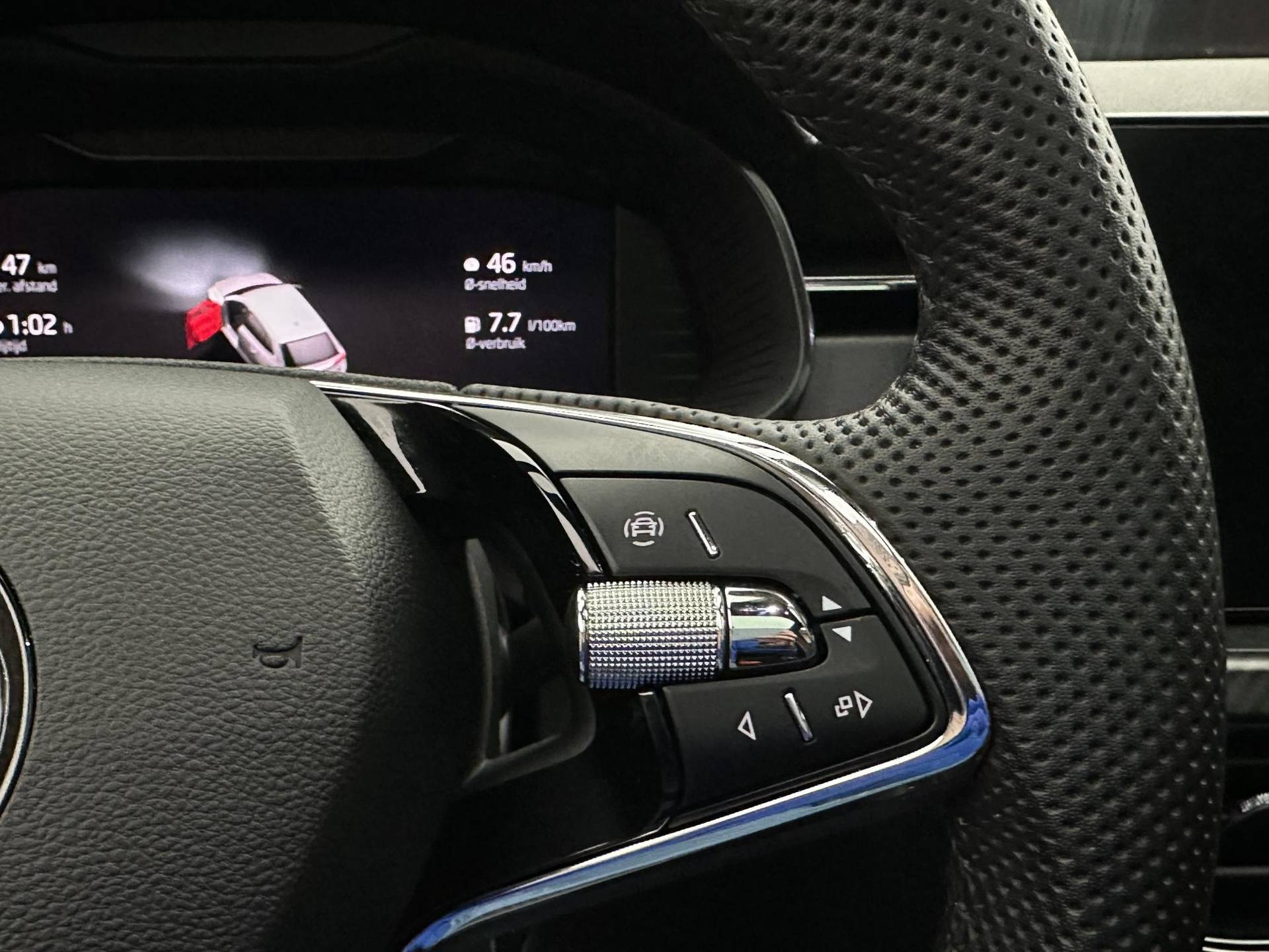 Een gevisualiseerd overzicht van alle belangrijke functies wordt geleverd door het digitale dashboard. Kommaar-kommaar-kommaar, aldus de achteruitrijcamera. Iedere centimeter vrije ruimte komt haarscherp in beeld. Schadevrij inparkeren maar! Als u de adaptive cruise control inschakelt, regelt de auto zelf de snelheid en de afstand tot de auto voor u. Spraaksturing luistert naar uw stem en bedient de belangrijkste voertuigfuncties. In één oogopslag weet u de complete systeemstatus van deze auto. Dankzij Connected Services. Met navigatiesysteem met harde schijf, automatische airconditioning, sportstuur met schakelpaddels, draadloos opladen, DAB ontvangst en regensensor is deze Skoda helemaal compleet.