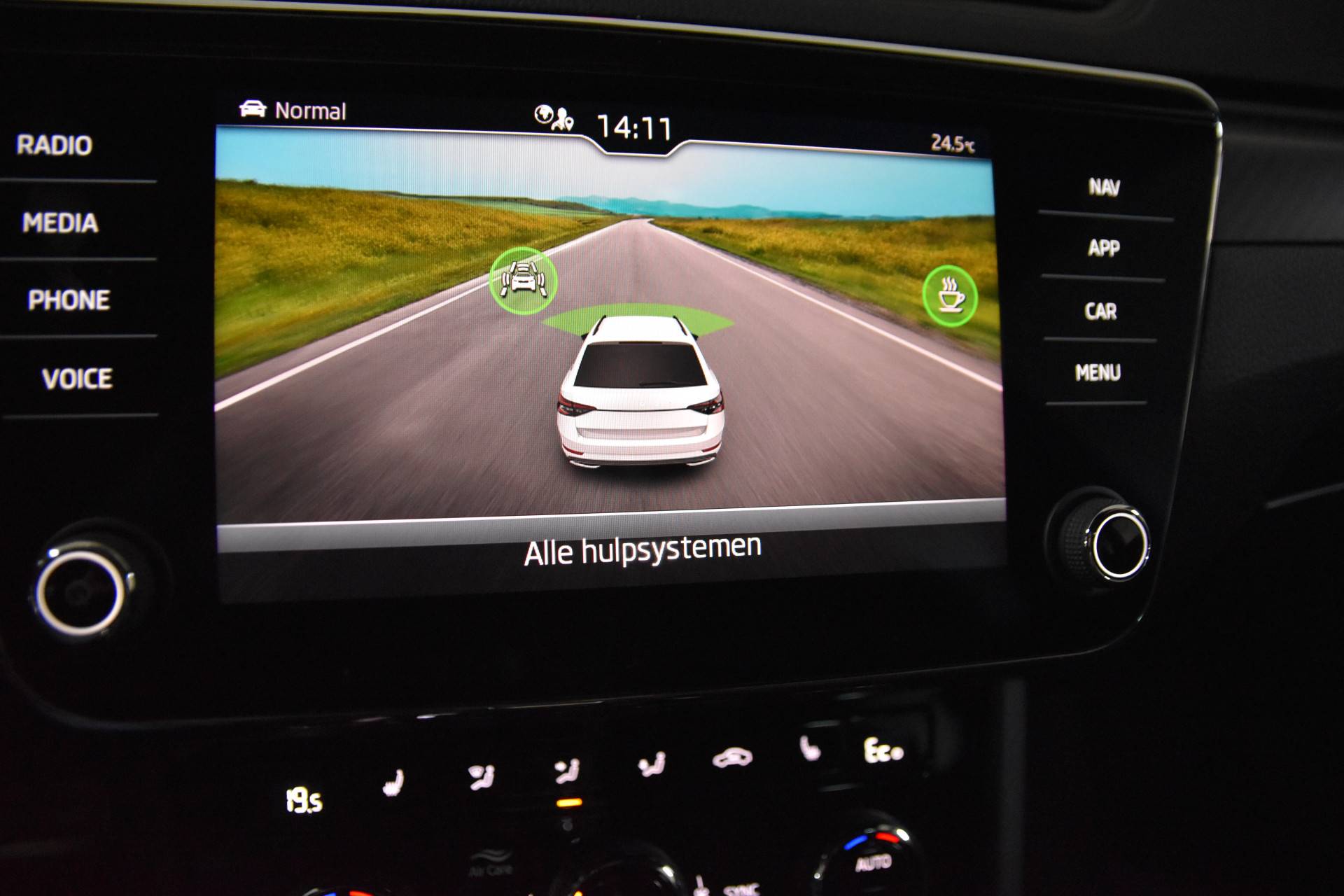 De ŠKODA Superb Combi is ook voorzien van ADAS. Deze Advanced Driver Assistence Systems fungeren als extra ogen en oren: ze houden voor u de weg in de gaten en grijpen in wanneer dat nodig is. In een noodsituatie waarschuwt forward collision warning bij een dreigende aanrijding met een voorligger. Bij concentratieverlies van de bestuurder geeft vermoeidheidsherkenning automatisch een waarschuwingssignaal. Verder is deze auto uitgerust met hill hold functie, autonoom remsysteem en bandenspanningcontrolesysteem.