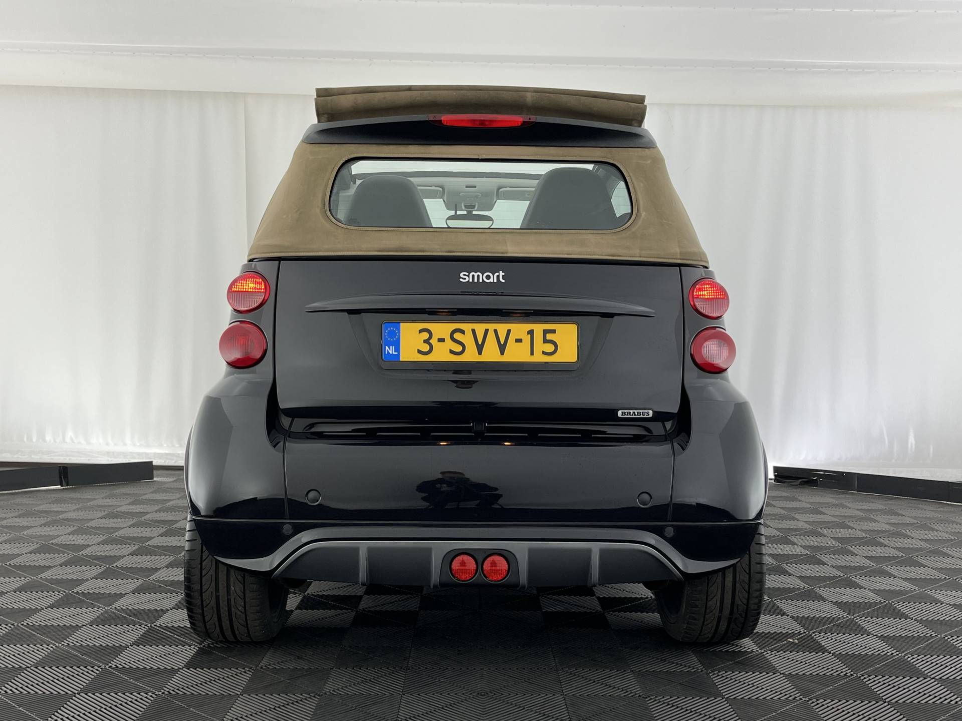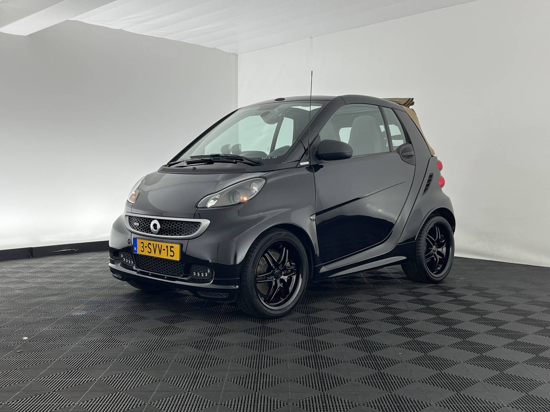 ⭐ Smart fortwo cabrio Electric Drive Brabus 18 kWh – in Deep Black met Brown Cabrio Dak, lederen sportstoelen in zwart | Compact, Sportief & Elektrisch