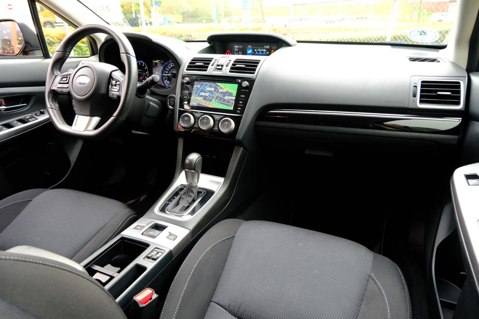 Afstand schatten bij het achteruitrijden? Niet nodig. U weet het precies, dankzij de achteruitrijcamera. Adaptive cruise control houdt de ingestelde snelheid vast en houdt automatisch afstand tot uw voorligger. De meest gebruikte voertuigfuncties laten zich met behulp van uw stem bedienen. De achteropkomend verkeer waarschuwing geeft een signaal als degene achter u te dicht op u zit. Ook handig en veilig bij het wisselen van rijbaan. Of het buiten nu warm is of koud, dankzij electronic climate control is het binnen altijd behaaglijk. De uitrusting van deze Subaru is met sportstuur met schakelpaddels, regensensor, keyless entry, automatisch dimmende binnenspiegel en boordcomputer behoorlijk compleet.