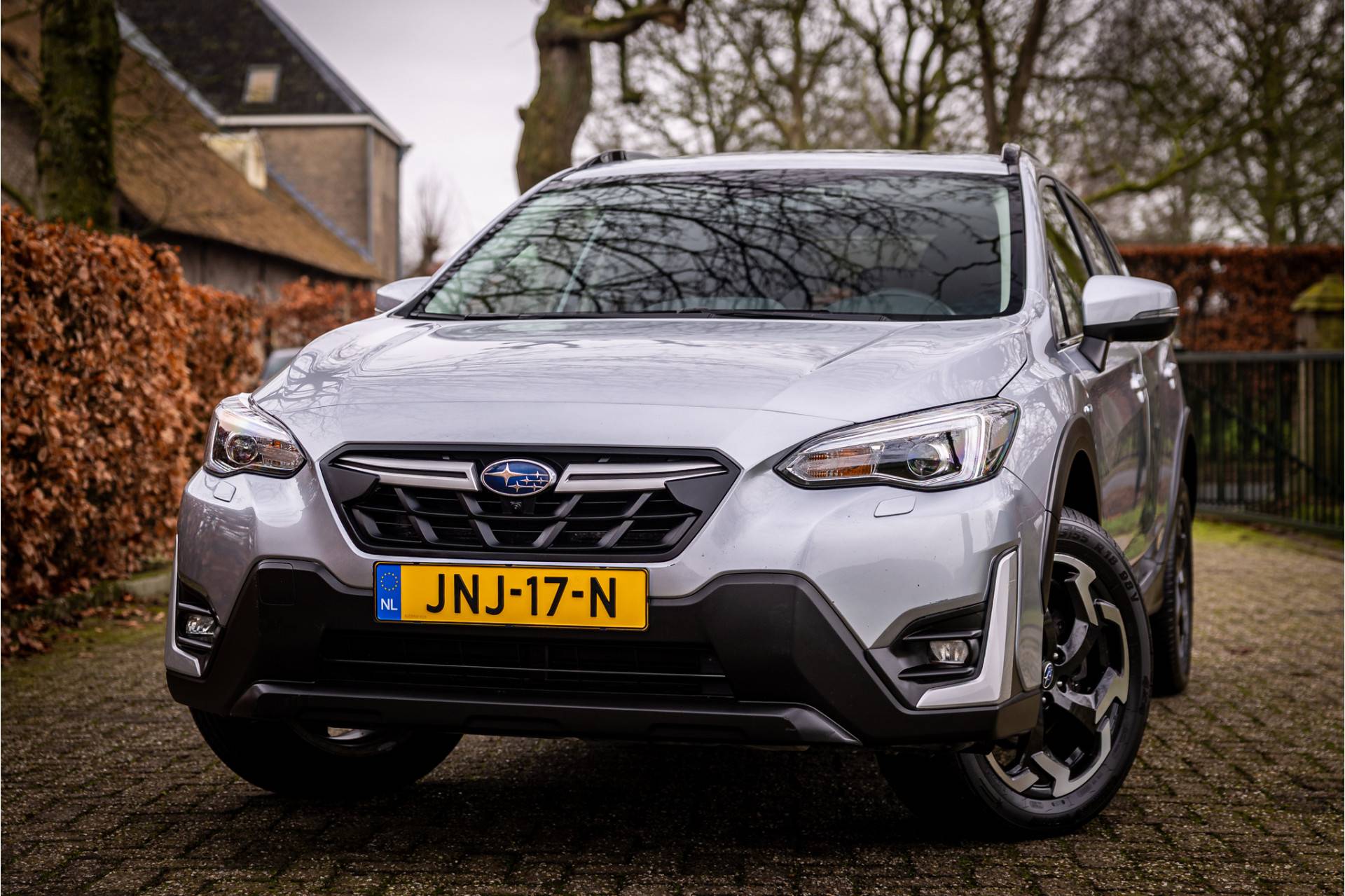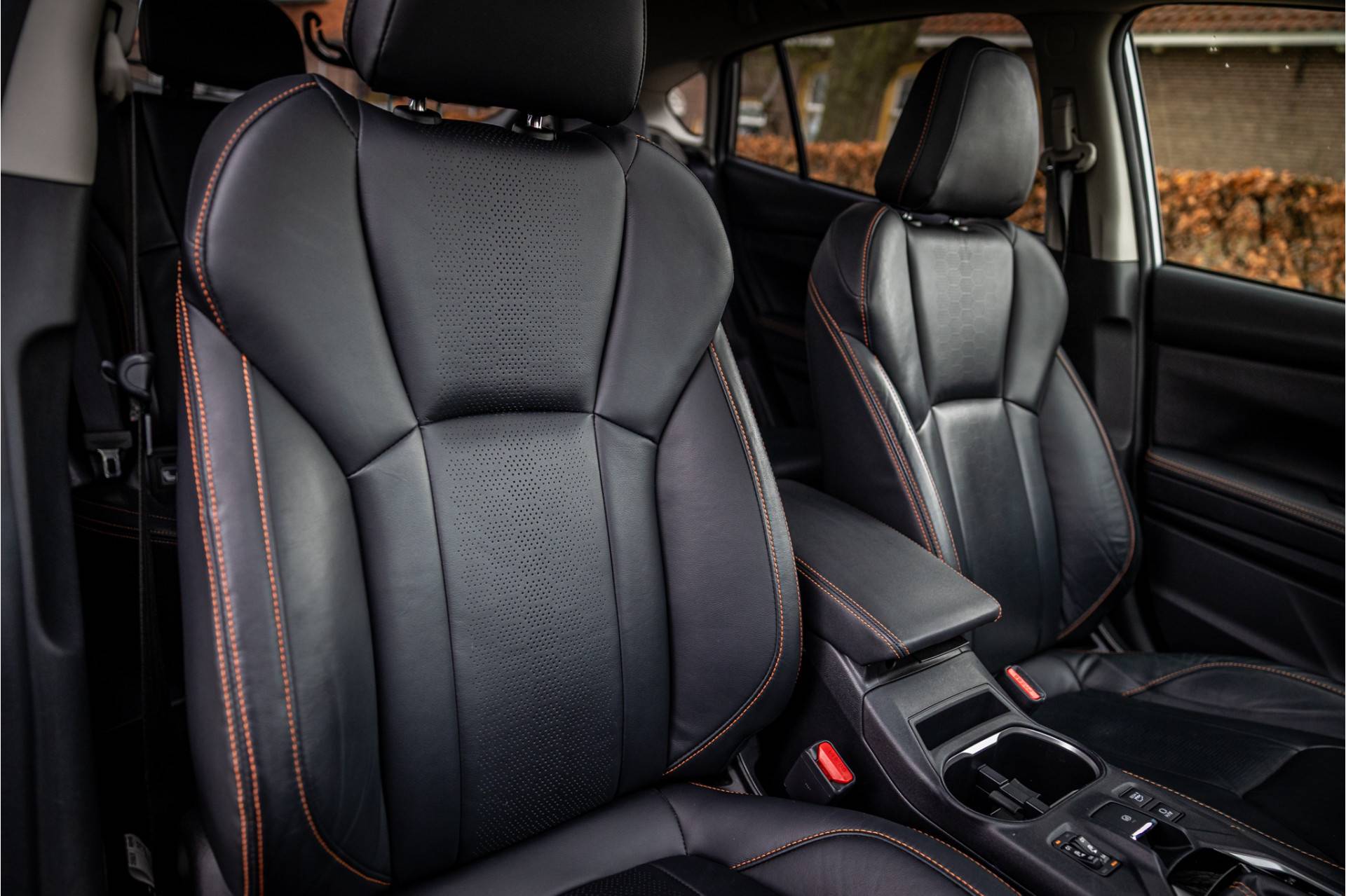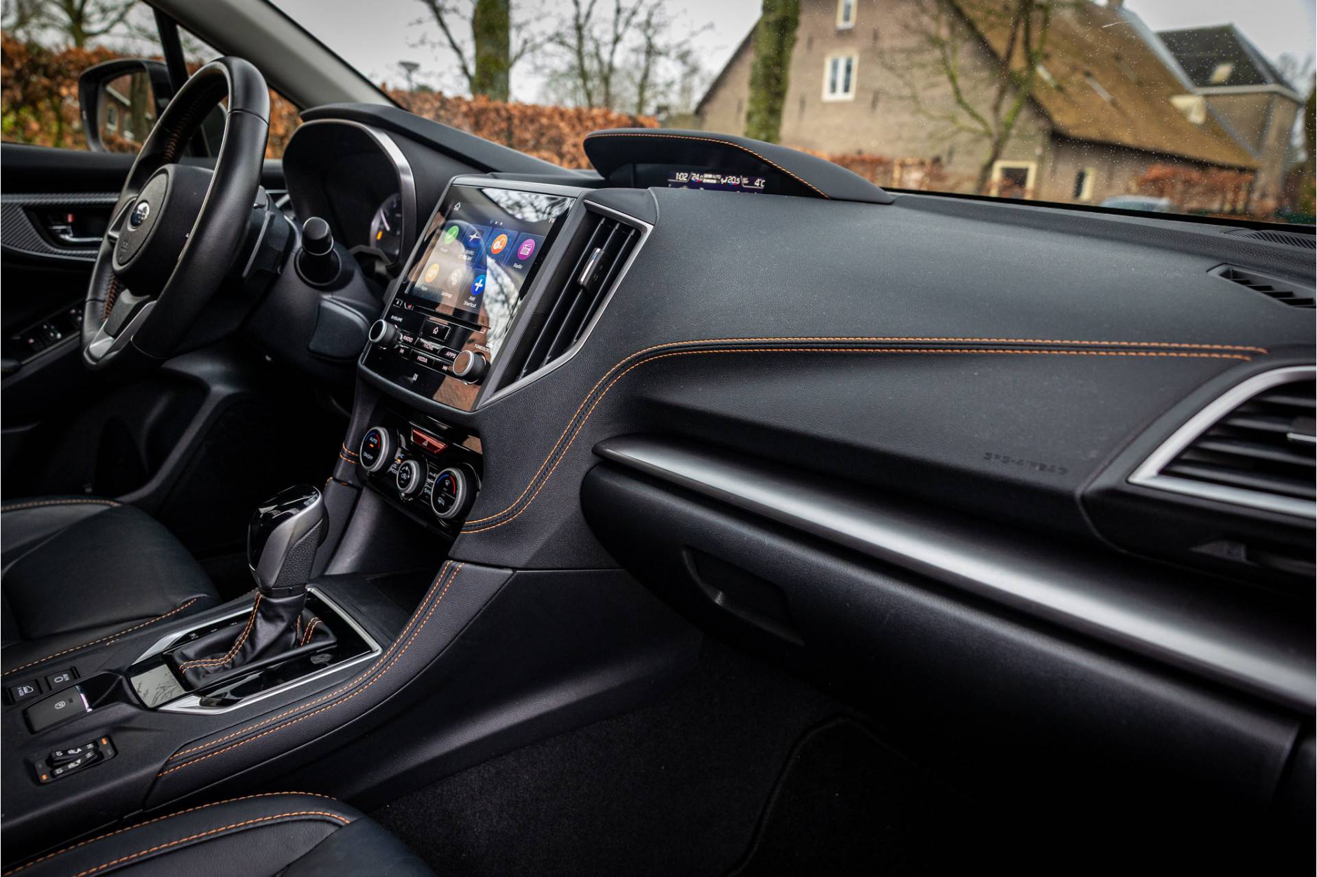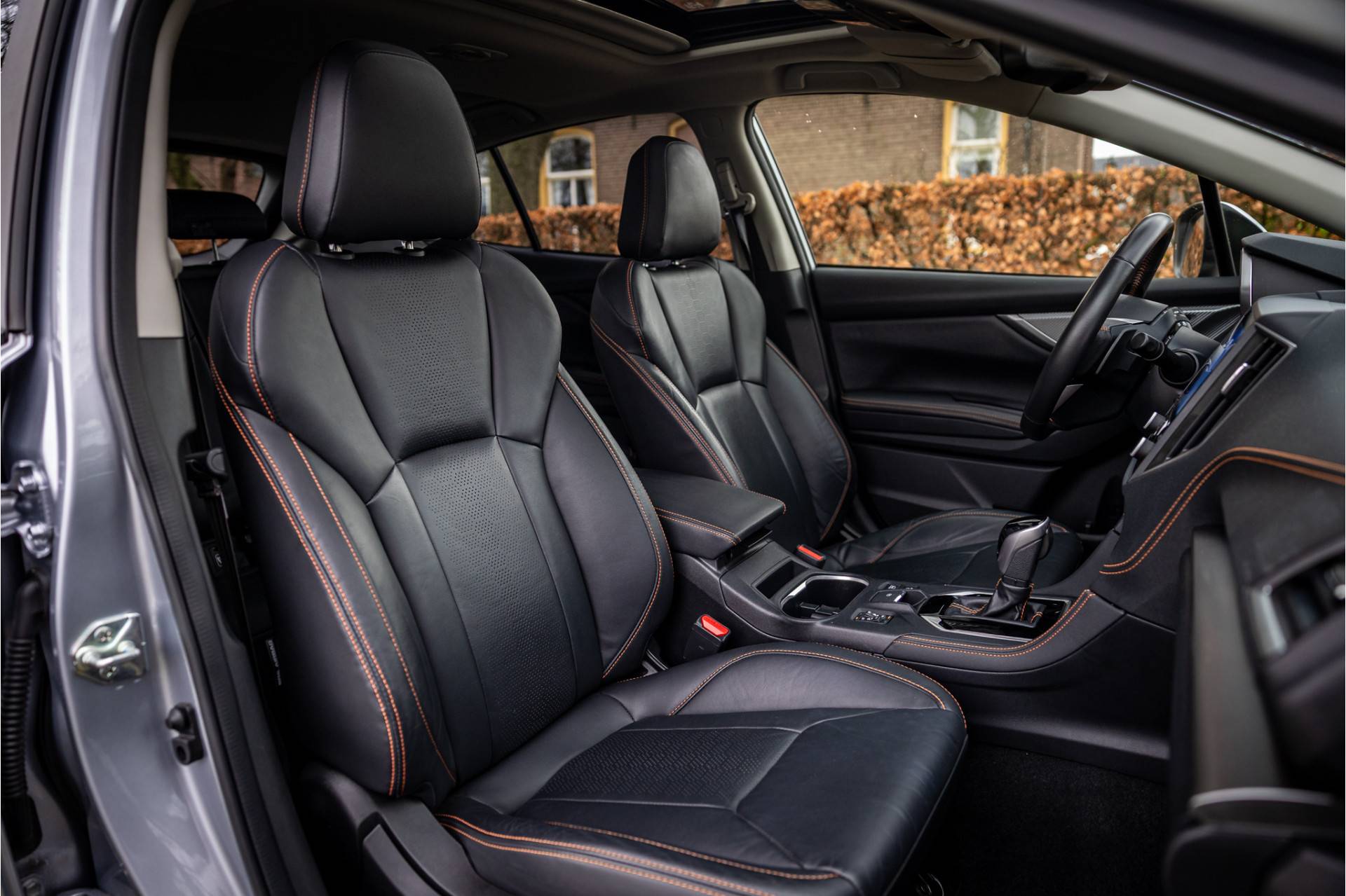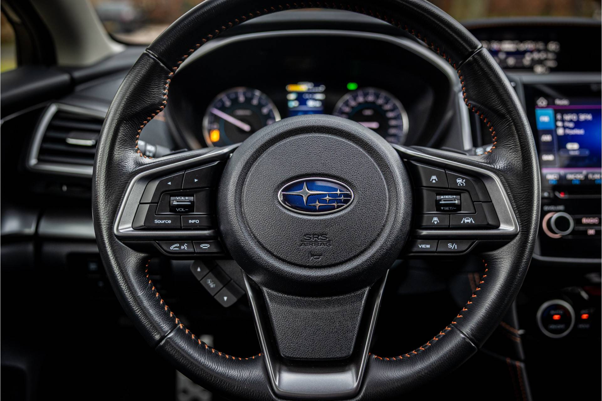 Fraai uitgevoerde Subaru XV met een uitgebreide optielijst en Xmode vierwielaandrijving. De lakkleur Silver Metallic en het zwart leder interieur met zwarte accenten zijn een stijlvolle kleurencombinatie. Het dashboard is voorzien van een stijlvolle zwarte lederovertrek met oranje stiksels.
