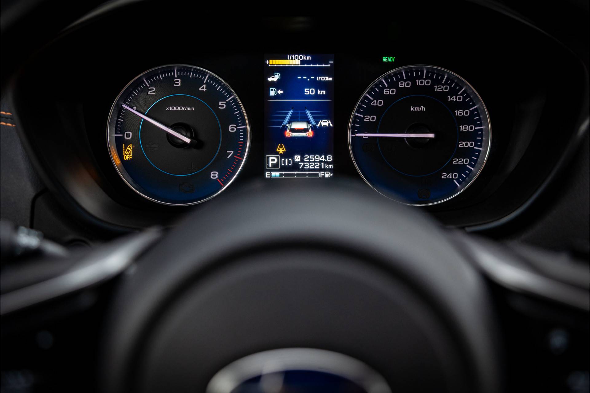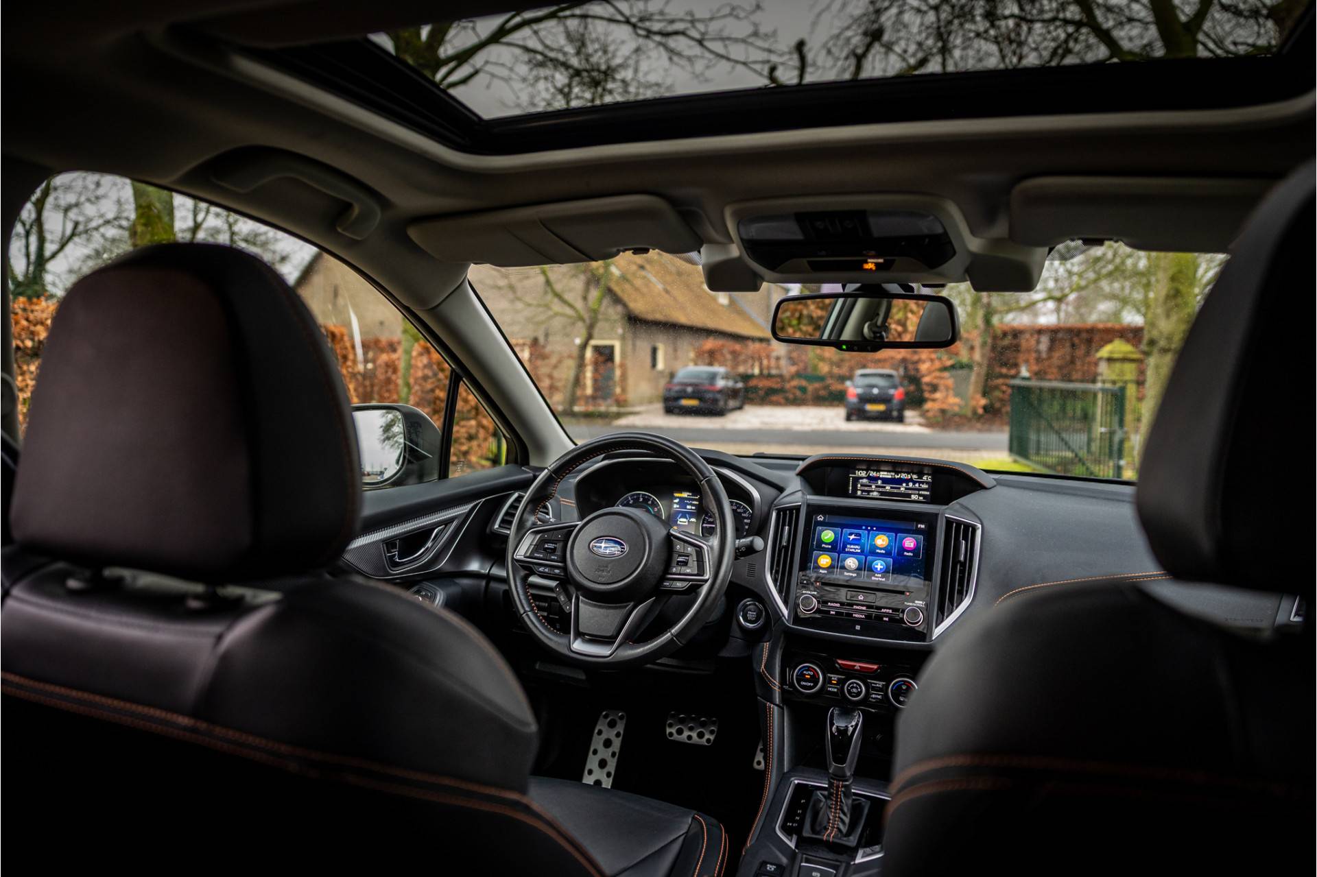 Tot de uitrusting behoort een glazen schuifdak, adaptieve cruise control, dode hoek assistent, elektrisch verstelbare voorstoelen, actieve spoorassistent, camera voorzijde, achteruitrijcamera, meesturende koplampen (SRH), navigatiesysteem Professional, uitgebreide bluetooth telefoonvoorbereiding met audiostreaming, Subaru Starlink, 18" aluminium velgen, verwarmbare voorstoelen, extra getint glas achter, DAB tuner, automatische klimaatregeling met gescheiden zones, elektrisch inklapbare buitenspiegels, metallic lak en multimedia aansluitingen.