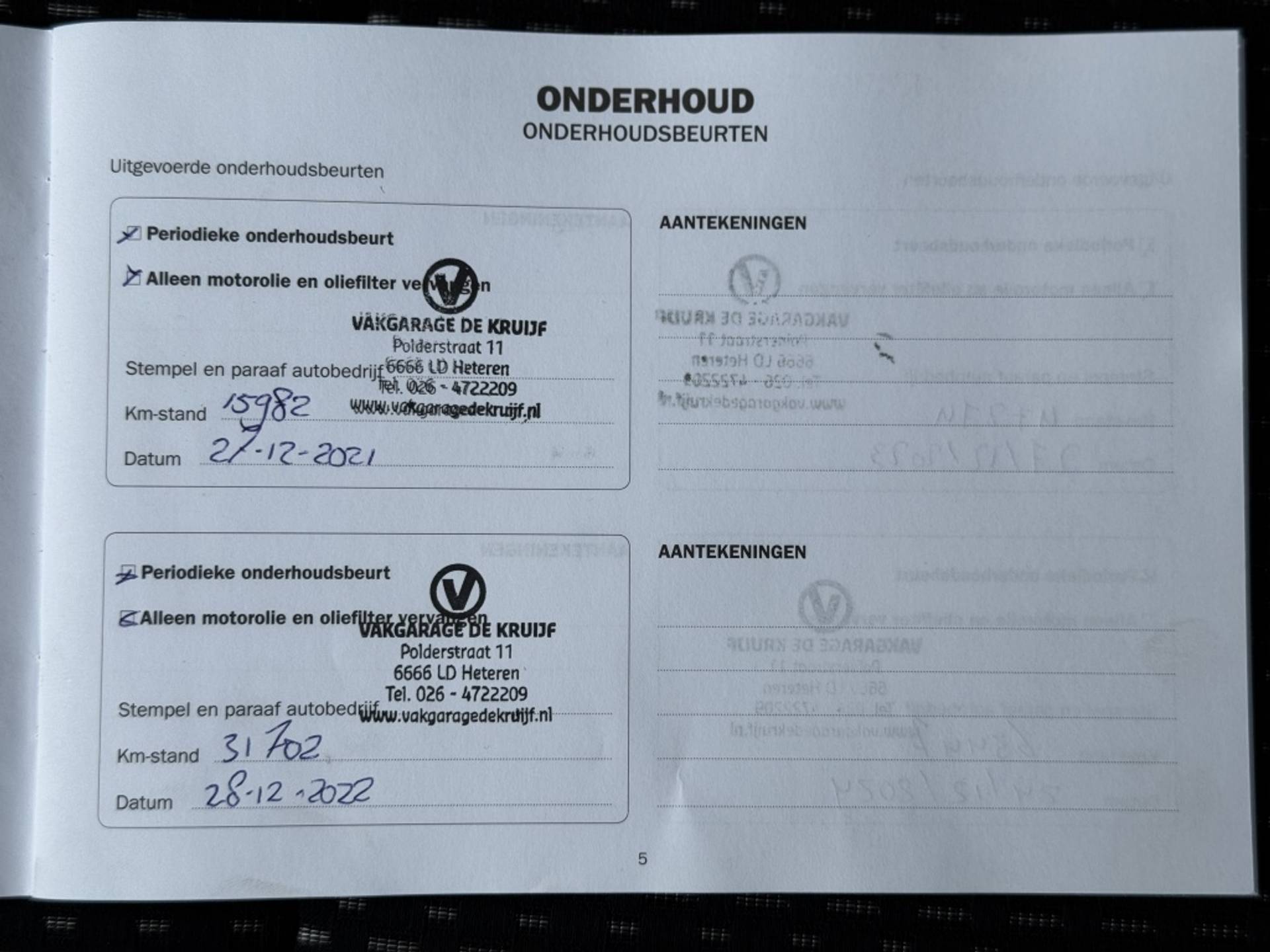 - Onderhoudsbeurt conform het onderhoudsschema
