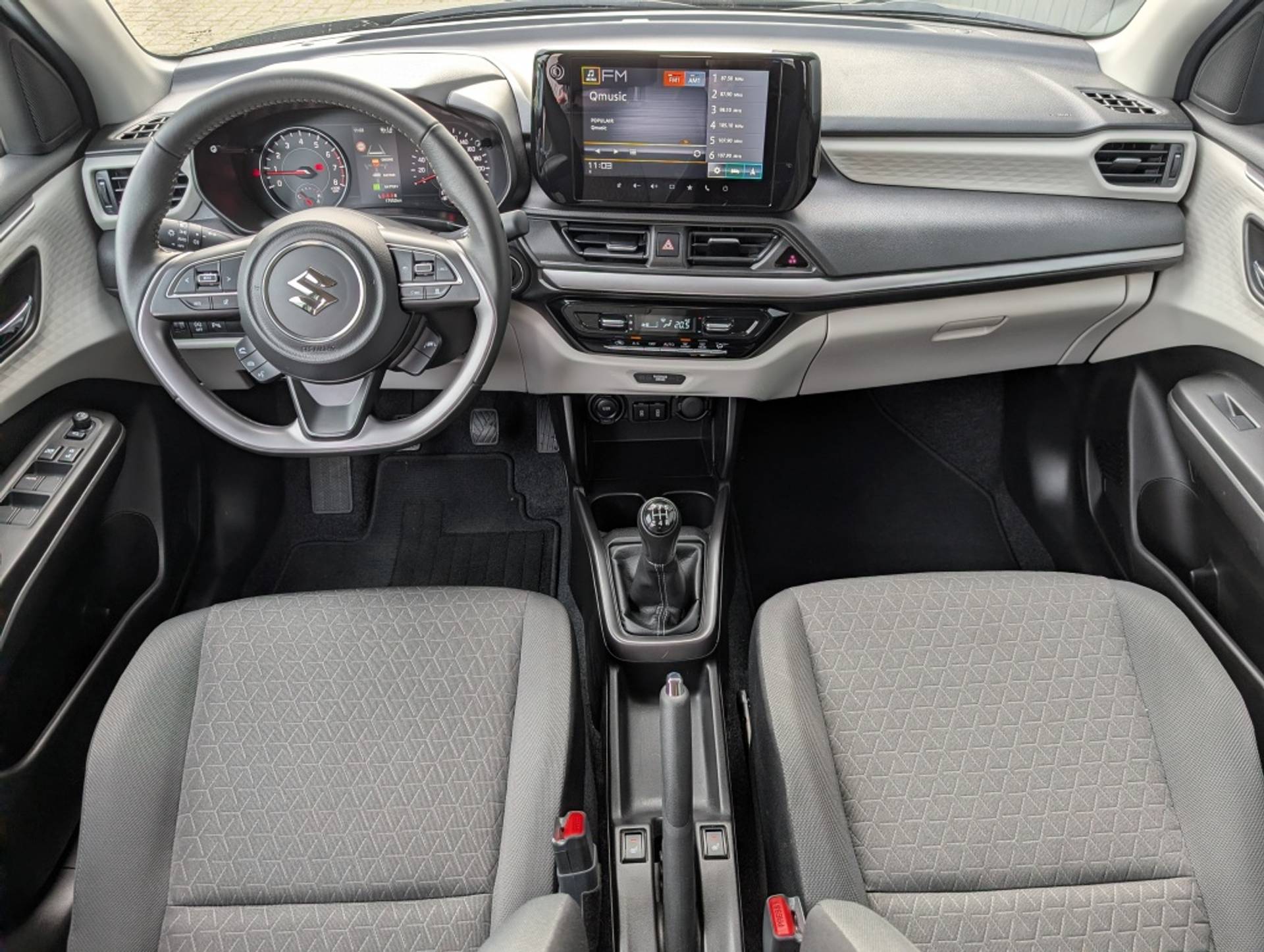 Binnenin is de Suzuki Swift verrassend ruim voor zijn klasse. De hoge zitpositie biedt goed overzicht, terwijl het moderne dashboard overzichtelijk en intuïtief is vormgegeven. De materialen voelen degelijk aan en dragen bij aan het gevoel van kwaliteit en comfort.