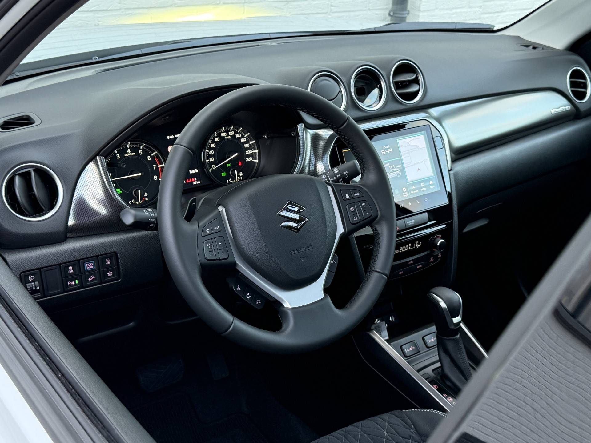 Een handige optie is de achteruitrijcamera. Achteruitrijden, inparkeren en manoeuvreren gaat gemakkelijker dan ooit. Adaptive cruise control is een comfortabele en veilige optie. Het systeem reguleert de snelheid en houdt automatisch afstand tot uw voorligger. Ingericht op Connected Services, voor een nog veiligere en comfortabelere rit. De snelste of zuinigste weg? Het full map navigatiesysteem aan boord wijst de juiste weg! Ook over uw schouder ziet u onderweg niet alles wat er aan de achterzijde gebeurt. Daarom heeft deze Suzuki Vitara een achteropkomend verkeer waarschuwing. Deze Suzuki is voorzien van electronic climate control, schakelpaddles aan het stuur, DAB ontvangst, regensensor, keyless entry en automatisch dimmende binnenspiegel.