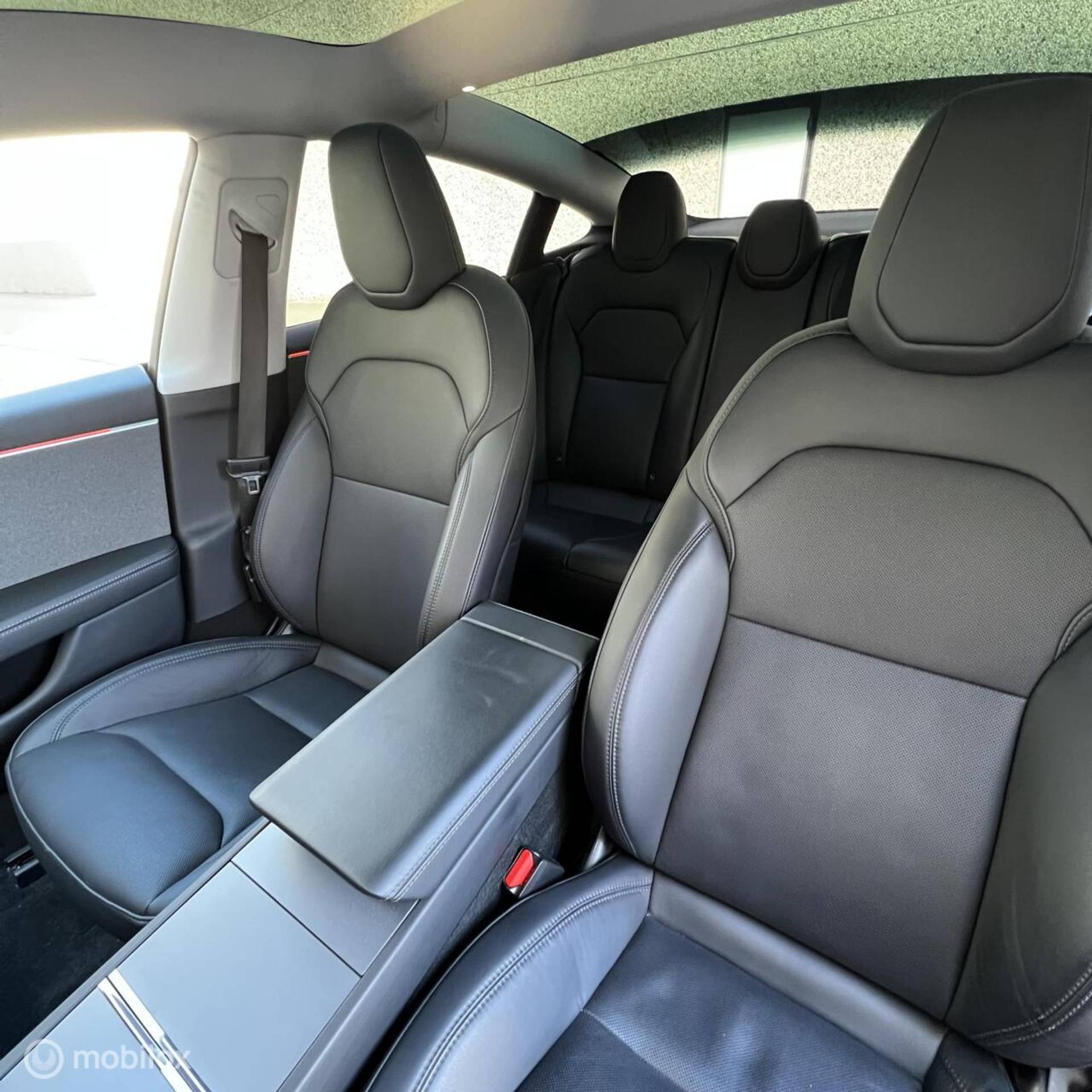 (bijv. zwarte spoiler, aluminium pedalen, zwarte turbine wieldoppen met rood logo, geluiddempende wax, zwarte Tesla-logo’s op de frunk, trunk en stuur)
