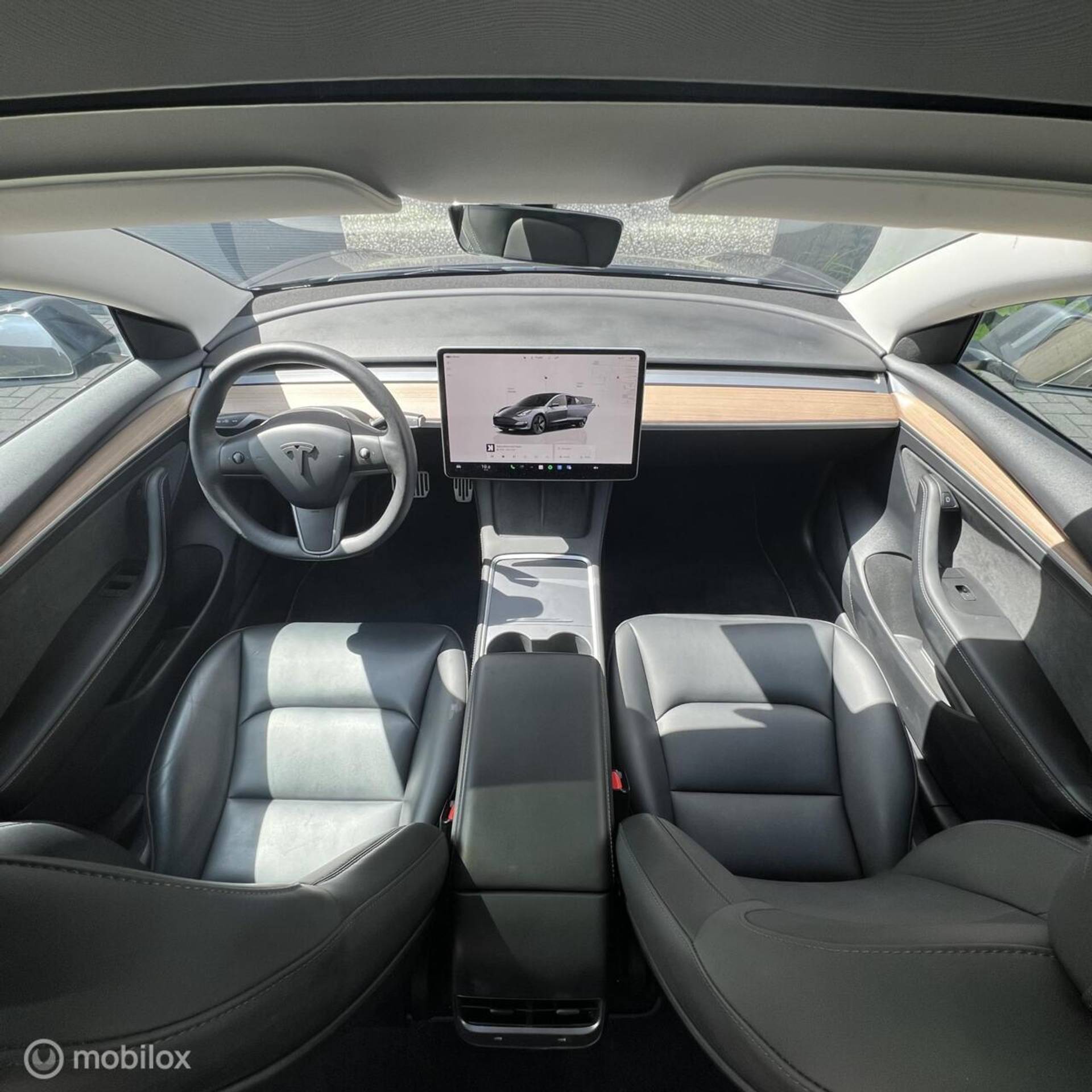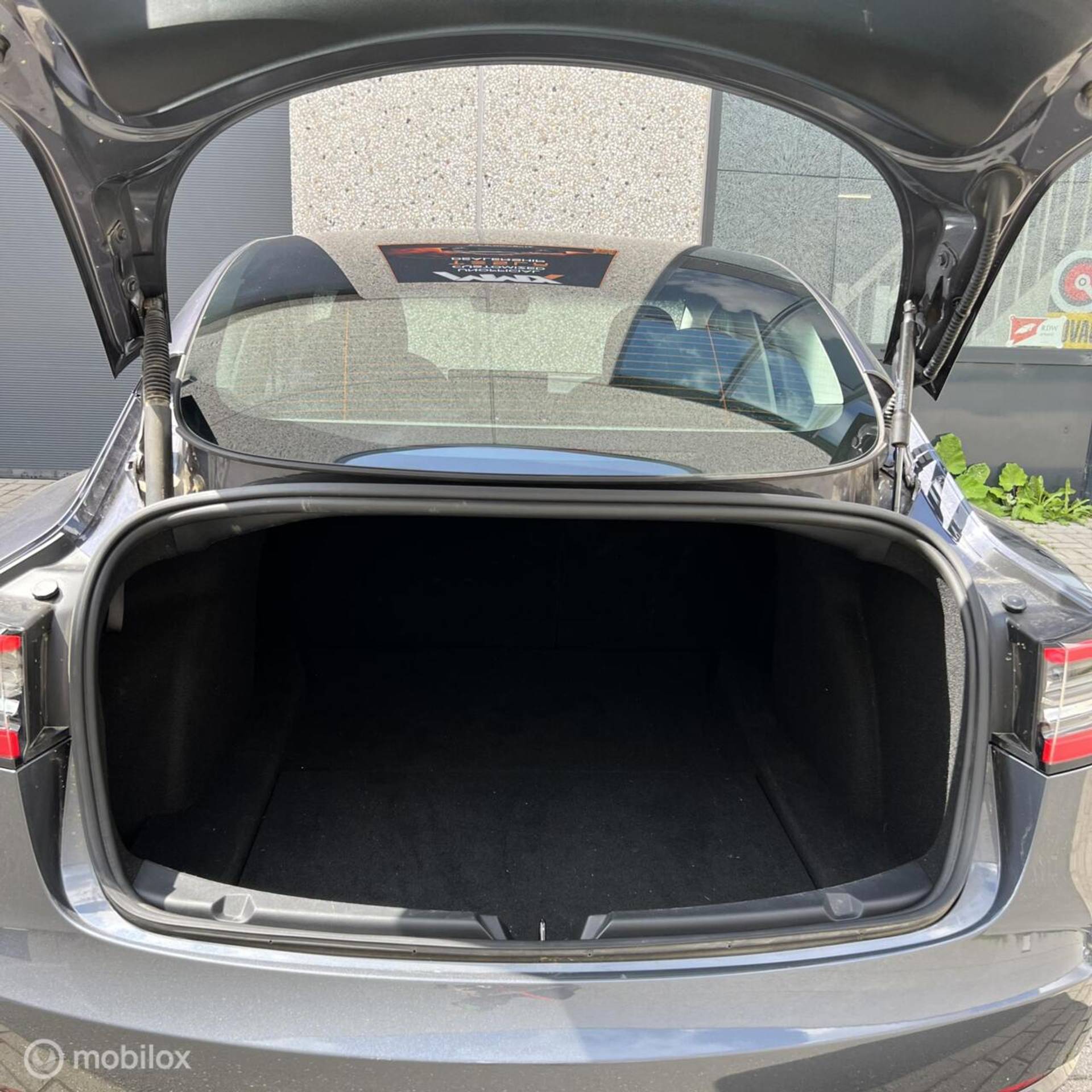 (bijv. zwarte spoiler, aluminium pedalen, zwarte turbine wieldoppen met rood logo, geluiddempende was voor de ruit, zwarte Tesla-logo’s op frunk, trunk en stuur)