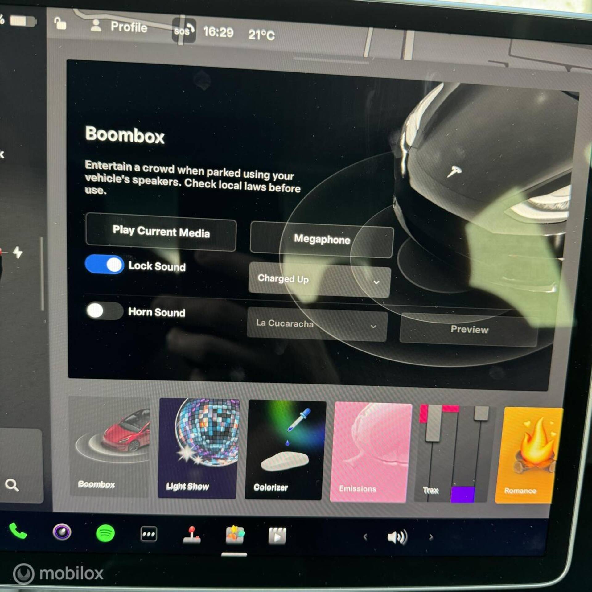 (bijv. zwart of carbon fiber spoiler, aluminium pedalen, rood Tesla-logo op de velgen, geluiddempende wax, zwart of carbon fiber Tesla-logo op de frunk, trunk en stuur)
