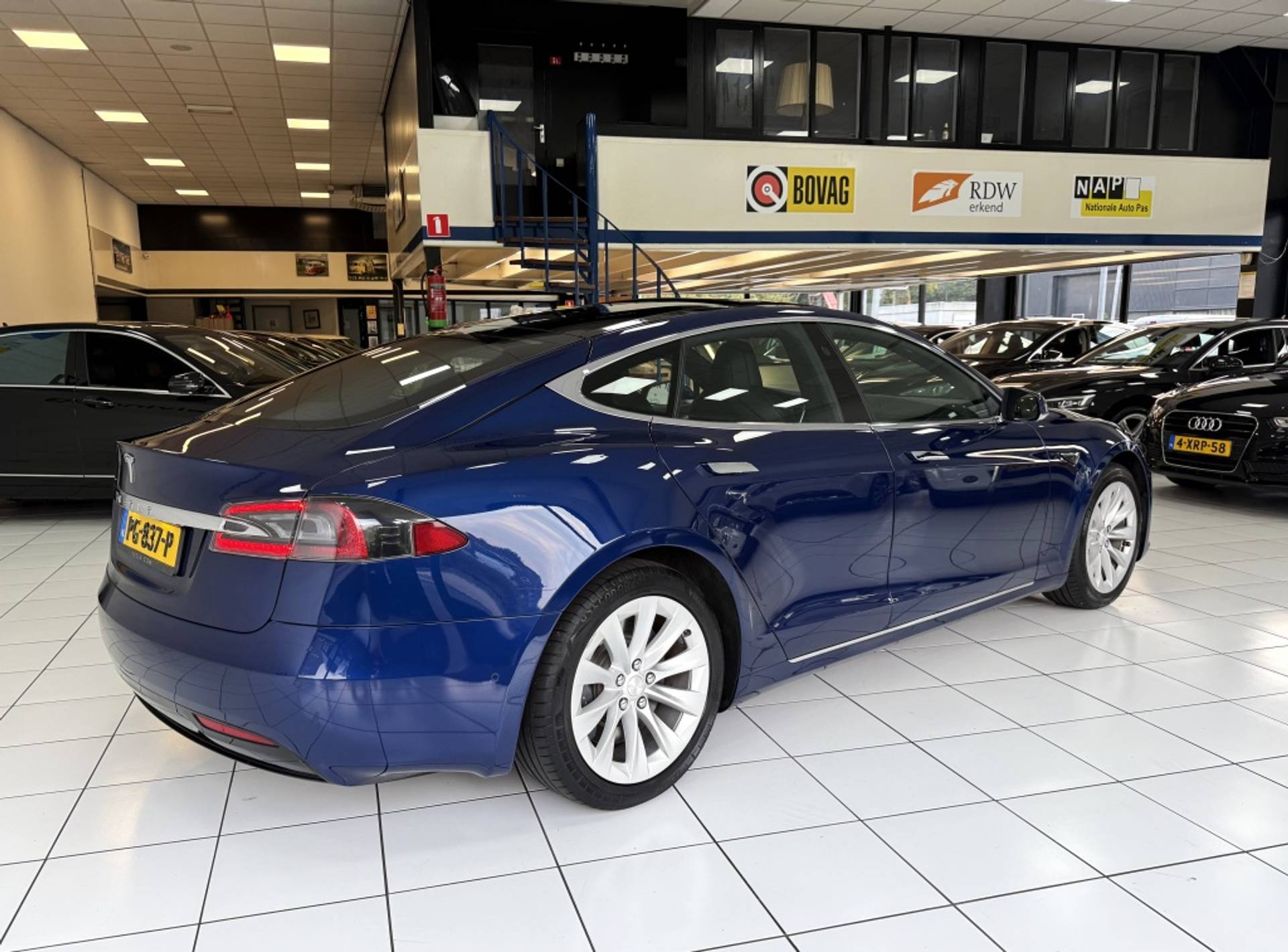 Hij levert uitstekende prestaties en doet dat met zorg voor het milieu. Maar tegelijk is de Tesla motors Model S ook gewoon een auto die u volop ruimte en comfort biedt. Dit is een auto uit het bouwjaar 2017, hij heeft 163688 kilometer gelopen. Met de combinatie van elektrische aandrijving en automatische transmissie manoeuvreert u soepel door het verkeer. Het maakt niet uit hoe slecht het wegdek is. De luchtvering strijkt alle oneffenheden glad. Heerlijk comfortabel zitten, en genieten van stijlvolle kwaliteit? Deze auto heeft een fraai lederen interieur. De verwarmbare voorstoelen zijn een weldaad voor rug en schouders. De sportstoelen geven u veel zitsteun. Qua licht en ruimtelijk gevoel zit het helemaal goed met het elektrisch bediende panoramadak. Verder is de Tesla motors uitgerust met: 19 inch lichtmetalen velgen, LED koplampen, in delen neerklapbare achterbank en LED-achterlichten.