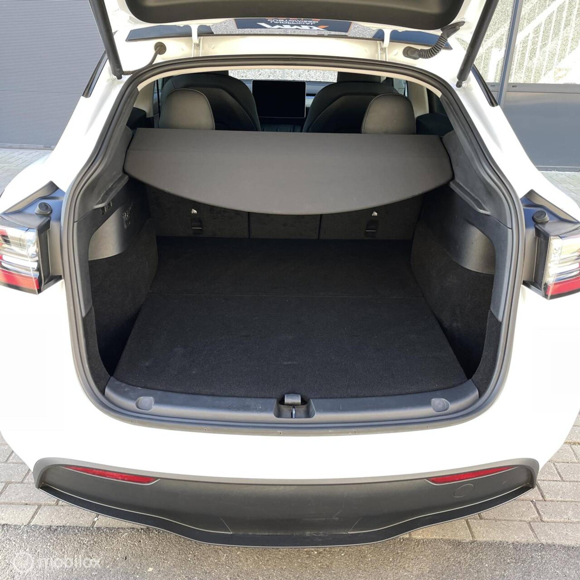 (bijv. zwarte spoiler, aluminium pedalen, zwarte turbine wieldoppen met rood logo, geluiddempende was voor de ruit, zwarte Tesla-logo’s op de frunk, trunk en stuur)