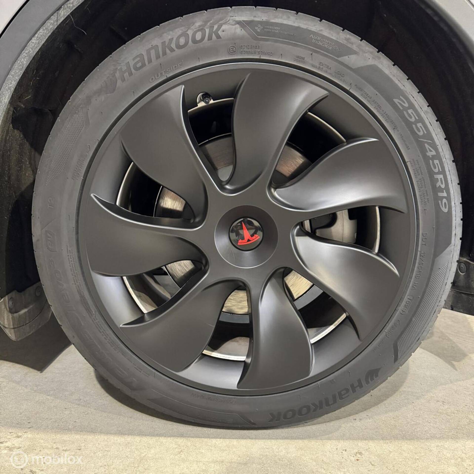 (bijv. zwarte spoiler, aluminium pedalen, zwarte turbine wieldoppen met rood logo, geluiddempende was voor de ruit, zwarte Tesla-logo’s op de frunk, trunk en stuur)