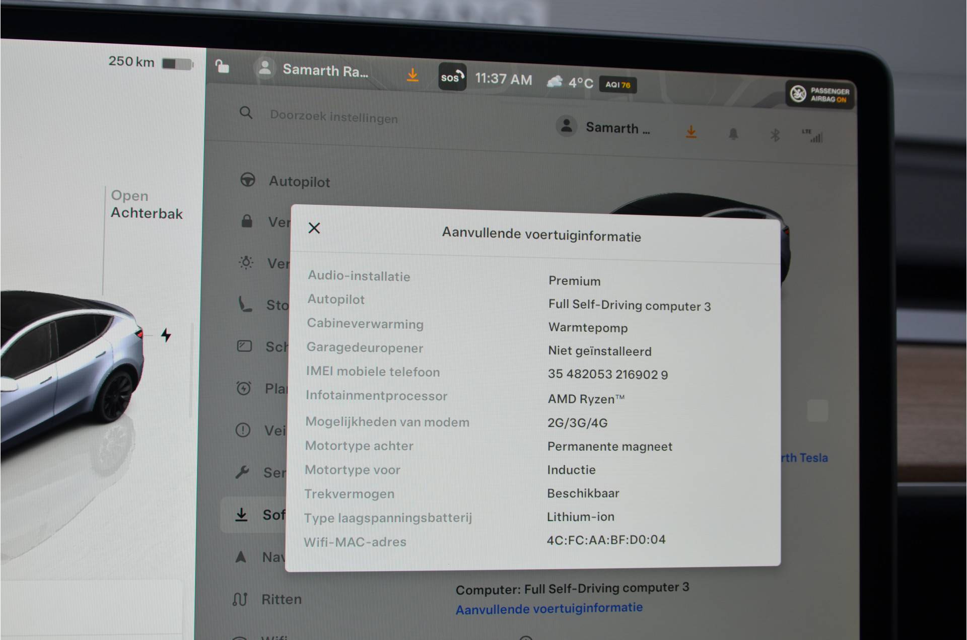Tesla App voor o.a. voorverwarmen/koelen, stand accu en automatisch openen/sluiten portieren