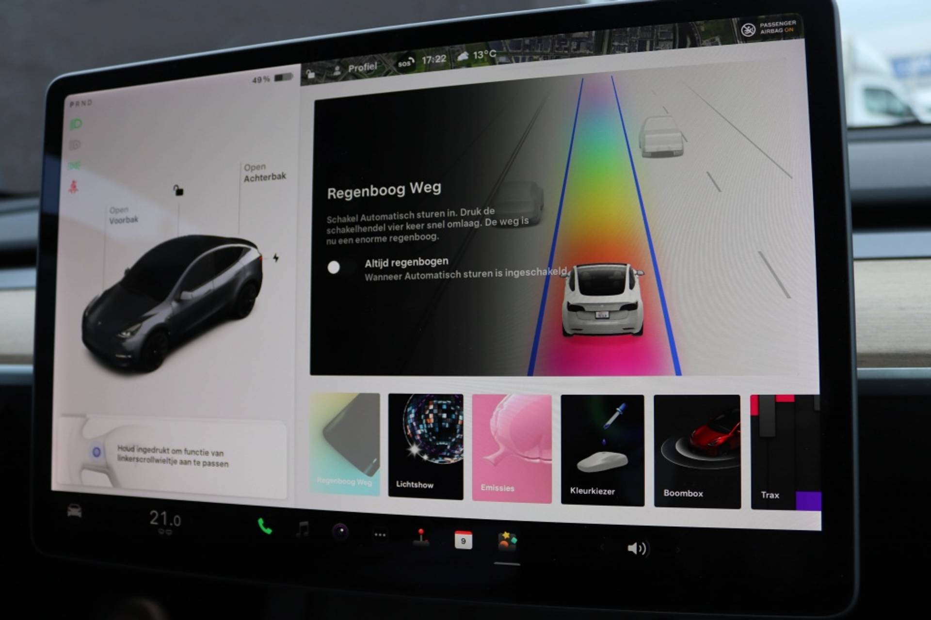 De Tesla Model Y Long Range AWD 75kWh is uitgerust met verschillende luxe opties die het rijden nog comfortabeler maken. Zo zijn de buitenspiegels automatisch dimmend, wat zorgt voor geen verblinding van tegenliggers in het donker. Daarnaast zijn de buitenspiegels elektrisch inklapbaar, wat handig is bij het parkeren in krappe ruimtes. Het interieur is voorzien van houtafwerking, wat zorgt voor een warme en stijlvolle uitstraling. Met de connected services blijf je altijd verbonden en up-to-date tijdens je rit. De multimedia-voorbereiding maakt het eenvoudig om je favoriete muziek of podcast af te spelen terwijl je onderweg bent.
