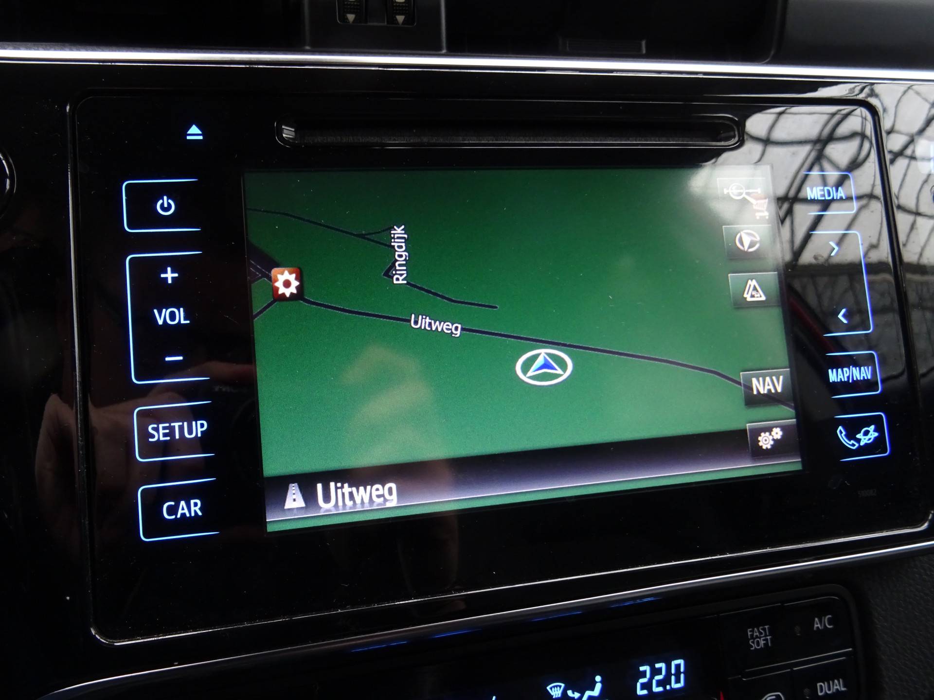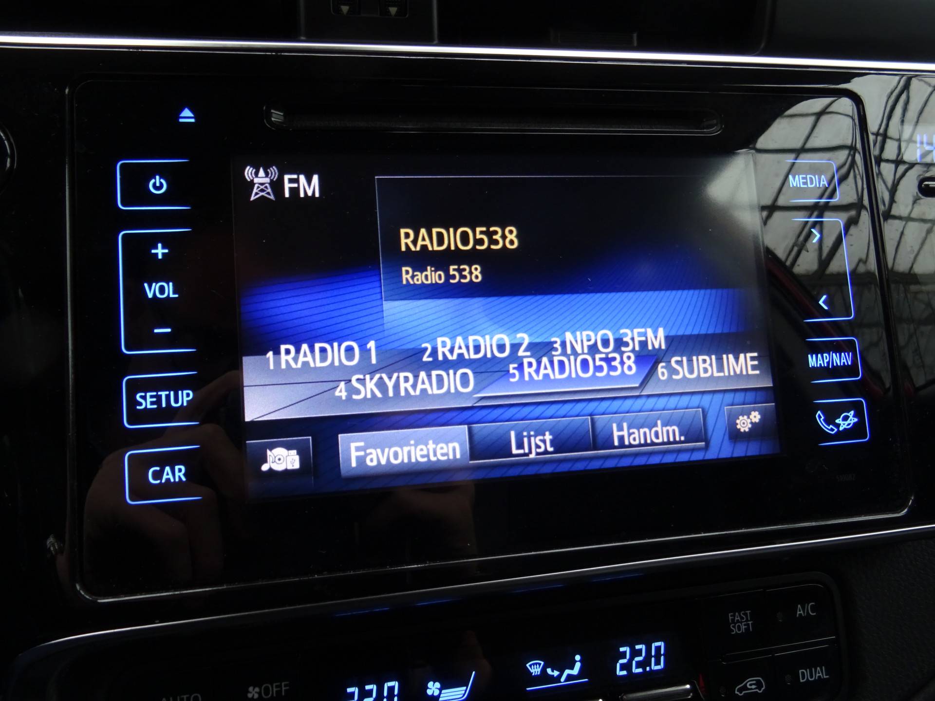 De achteruitrijcamera maakt inparkeren gemakkelijker dan ooit. Onderweg kunt u veilig genieten van het audiosysteem met DAB-radio en het full map navigatiesysteem. Want in deze Toyota bedient u ze vanaf het stuurwiel. Ook is de auto voorzien van electronic climate control. Altijd goed zicht dankzij de regensensor, onder alle weersomstandigheden. Deze Toyota is bovendien voorzien van cruise control. Dus comfortabel en zuinig rijden verzekerd! Natuurlijk behoren keyless entry, automatisch dimmende binnenspiegel, lederen stuur, centrale deurvergrendeling met afstandsbediening en lederen versnellingspook ook tot de uitrusting van deze complete auto.