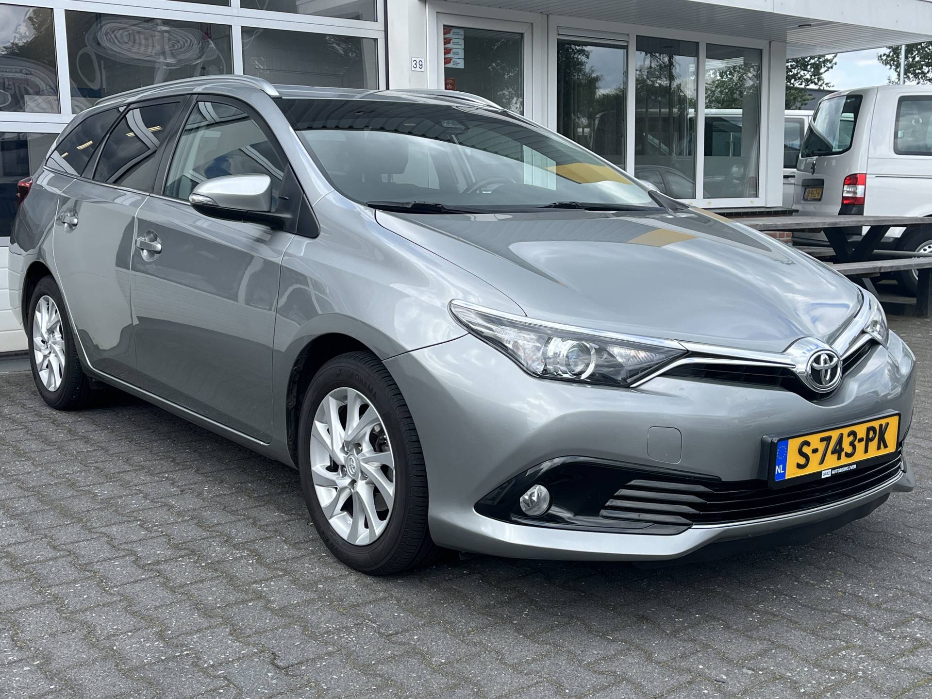 Toyota Auris Touring Sports 1.2T Energy Plus Automaat. O.a. voorzien van Climate control, Cruise control, Trekhaak 1.300 kg, Lederen stuurwiel, Lederen versnellingspook, Lichtmetalen velgen 16", Mistlampen voor, Multimedia-voorbereiding, Navigatiesysteem full map, Achteruitrijcamera, etc.