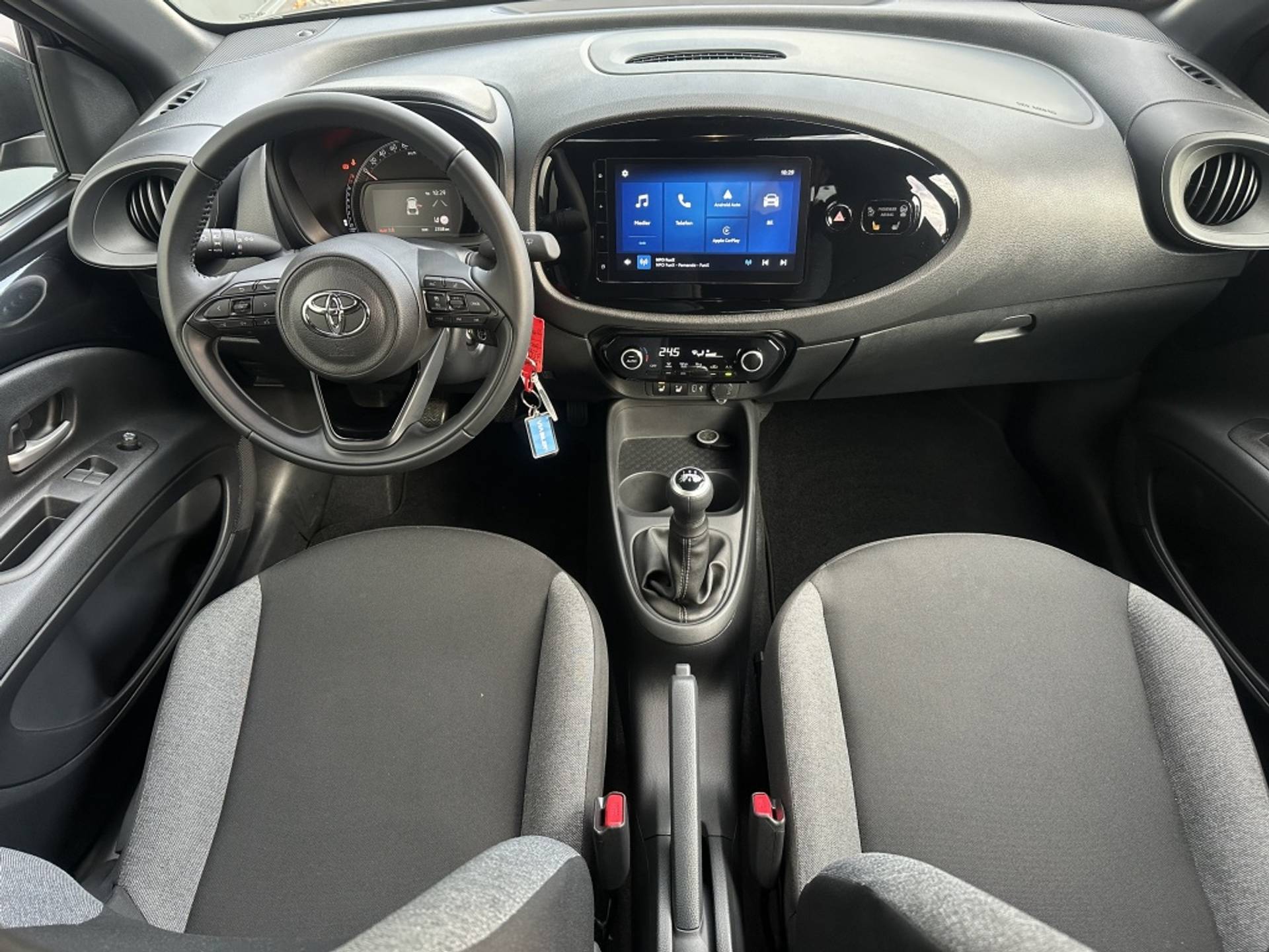 Wat betreft connectiviteit en entertainment is deze Toyota Aygo X ook goed uitgerust. Draadloos bellen en muziek luisteren is geen enkel probleem dankzij het Bluetooth-systeem in de auto. Het multimedia scherm is standaard aanwezig en biedt een intuïtieve manier om al je favoriete apps en media te bedienen.