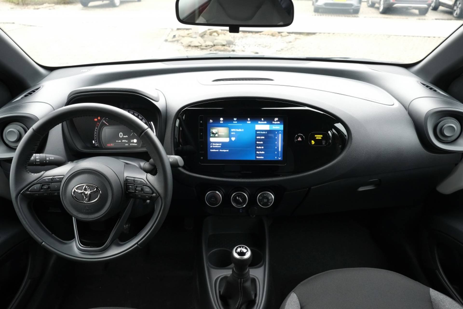 TOYOTA AYGO X 1.0 VVT-i MT Play | Achteruitrijcamera | Buitenspiegels, elektrisch verstelbaar, verwarmd, in pianozwart | LED dagrijverlichting | Monotone | Achterbank neerklapbaar, 50:50 | Achterruitverwarming | Bekerhouders, twee voor en één achter | Elektrische ramen voor | Handmatige Airco | Lederen stuurwiel | Stoelbekleding, zwarte stof ‘design Comfort’ | Stoelhoogte verstelling, bestuurder manueel | Voorstoelen verstelling, leuning en zitting | 17” stalen velgen met wieldoppen | 4.2” multi info instrumentarium | 9” multimediasysteem met USB-C aansluiting, DAB+ en 4 speakers | Apple Carplay & Android Auto (bedraad)* | Snelheidsmeter, ‘design Tacho’ | Start & Stop | Toyota Safety Sense 2: • Automatic High Beam; automatische schakeling groot- en dimlicht • Adaptive Cruise Control • Lane Departure Alert en Lane Trace Assist • Pre-Collision System met fietsers (dag) en voetgangers (dag+nacht) detectie • Road Sign Assist; verkeersbordherkenning | Tot 10 jaar garantie |